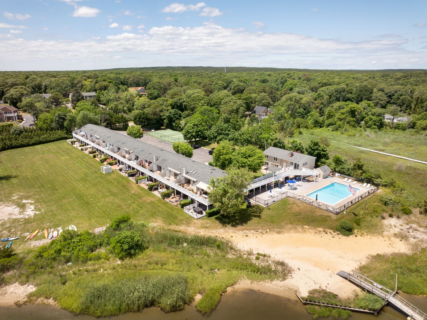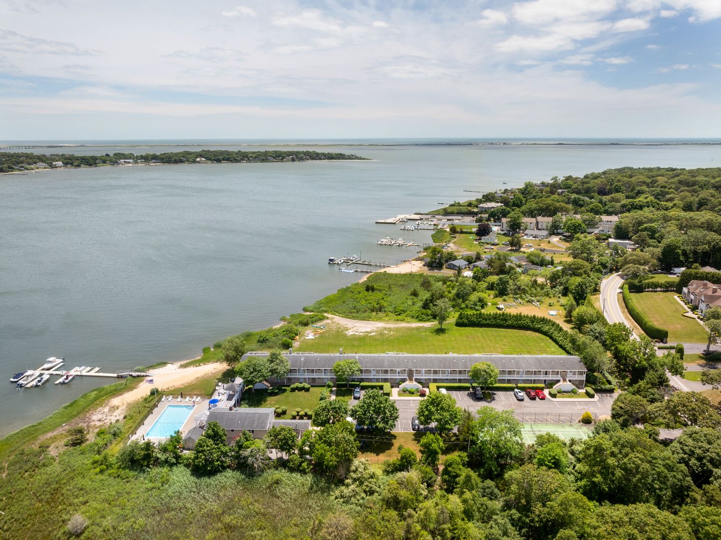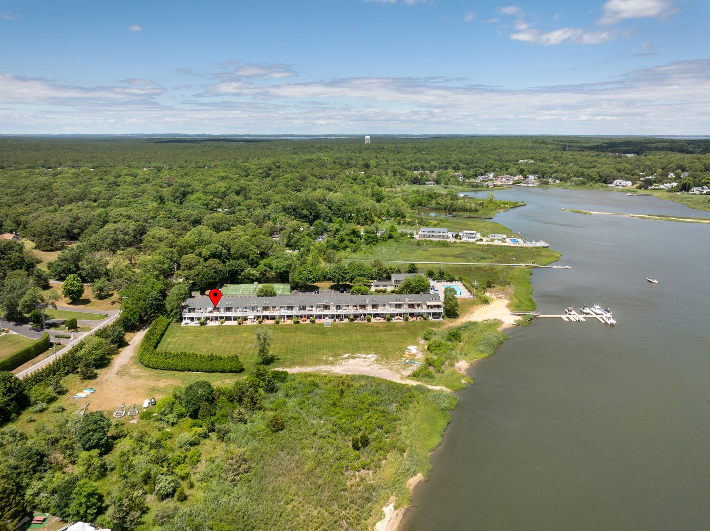 Two bedroom coop with a beach cottage vibe and a 12X25 deck overlooking Tiana Bay on a large waterfront property. Dock with available boat slip, private beach, and easy access for kayaking. Large saltwater, gunite pool with views of Dune Road and Shinnecock Bay. Minutes to ocean beaches. Beautiful club house and private tennis/pickleball court. Year round enjoyment of all the South and North Forks have to offer.