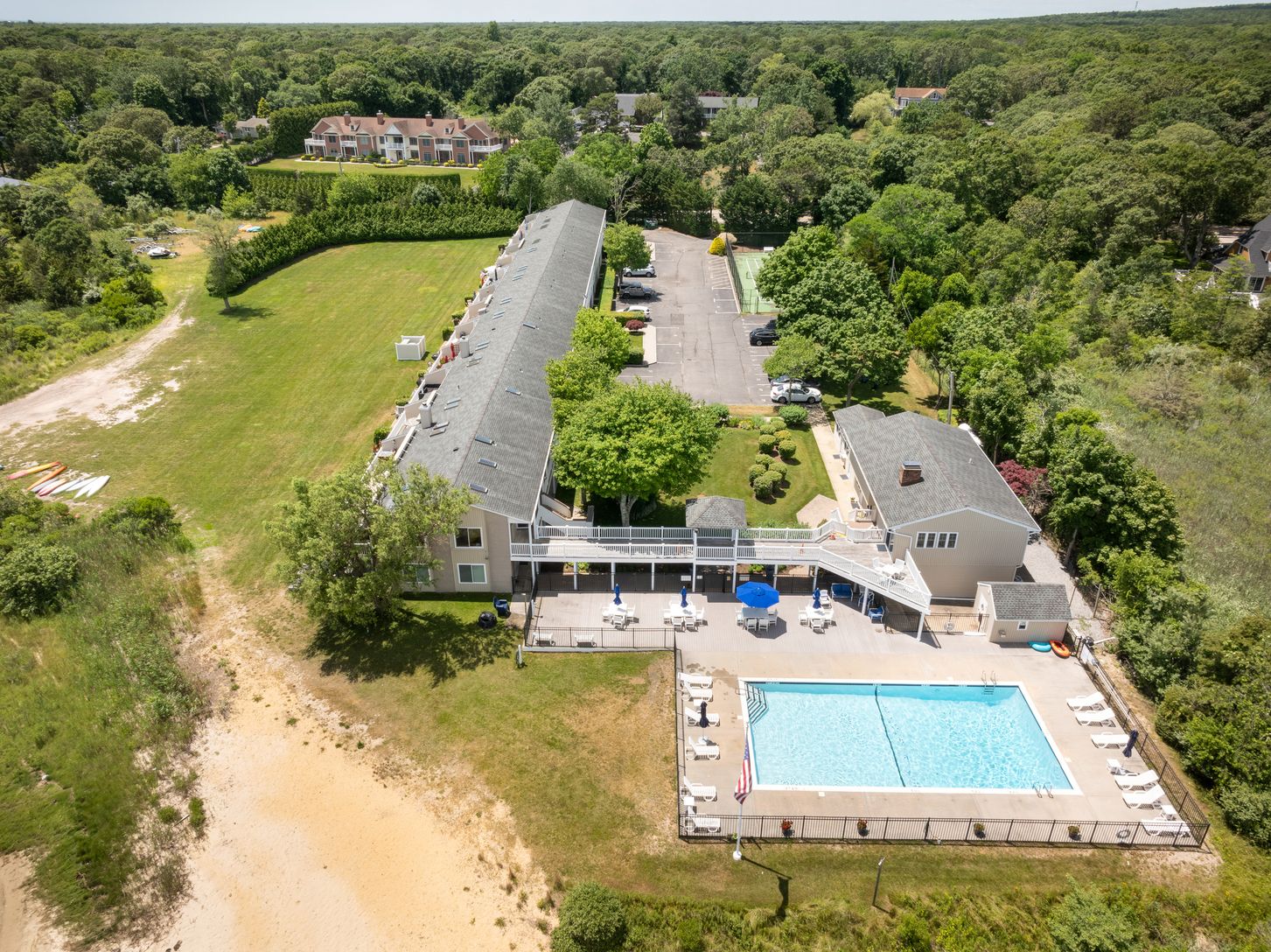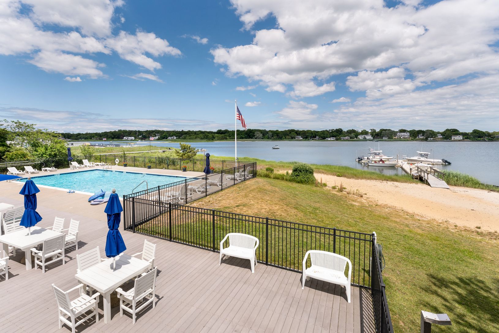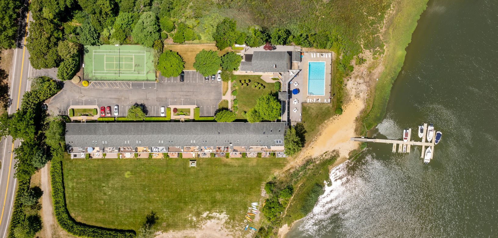 Two bedroom coop with a beach cottage vibe and a 12X25 deck overlooking Tiana Bay on a large waterfront property. Dock with available boat slip, private beach, and easy access for kayaking. Large saltwater, gunite pool with views of Dune Road and Shinnecock Bay. Minutes to ocean beaches. Beautiful club house and private tennis/pickleball court. Year round enjoyment of all the South and North Forks have to offer.