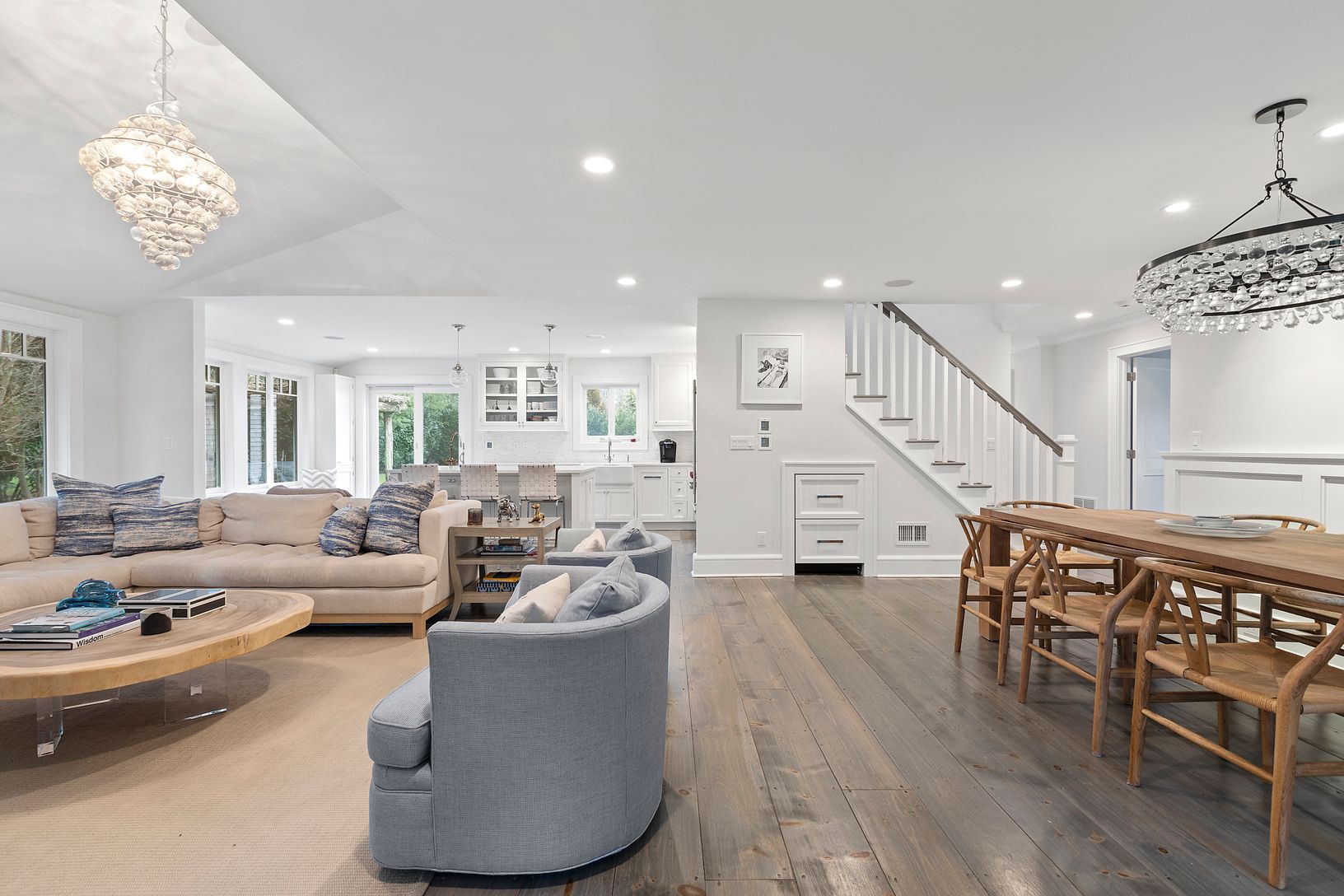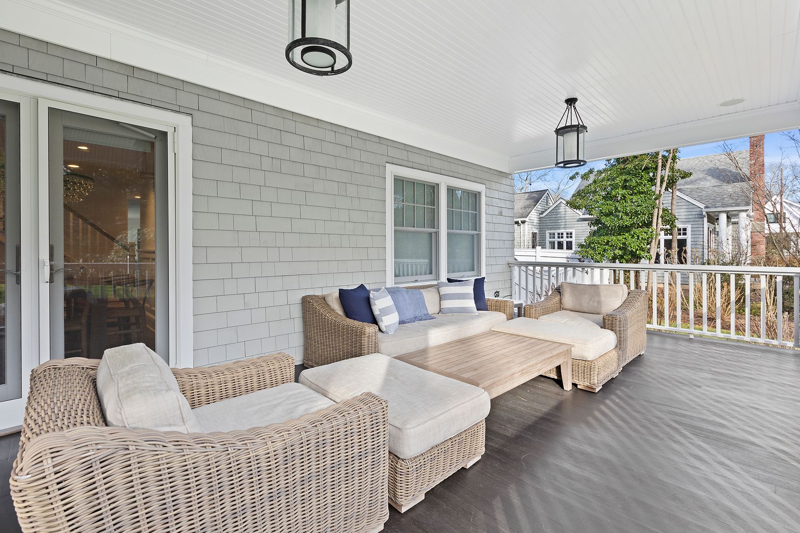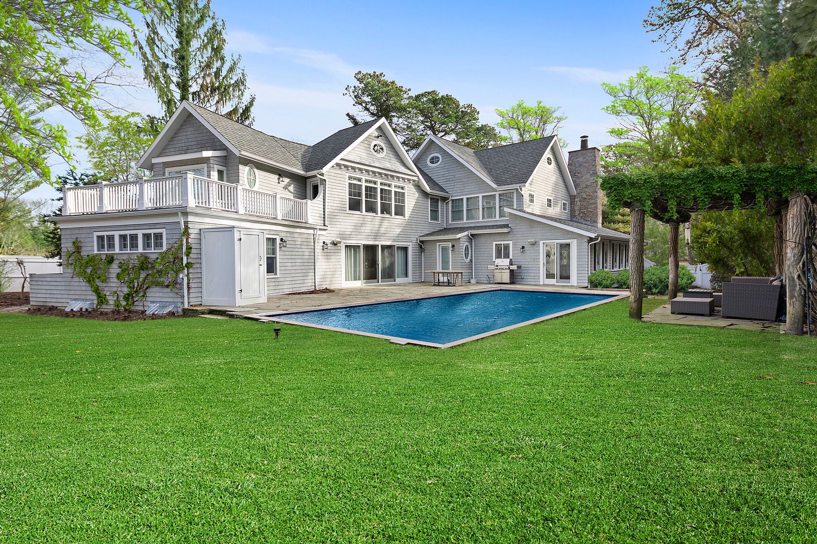 Enjoy the beauty and luxury of East End living in this completely, impeccably-renovated two story farmhouse style home, perfectly situated south of the highway in desirable Wainscott! The turnkey 4+ bedroom, 6 bathroom gem sits on nearly a half-acre of lovely landscaped grounds and offers a charming front porch overlooking lush lawn, an upper deck, wonderful private rear outdoor environs for lounging and entertaining, a large heated swimming p