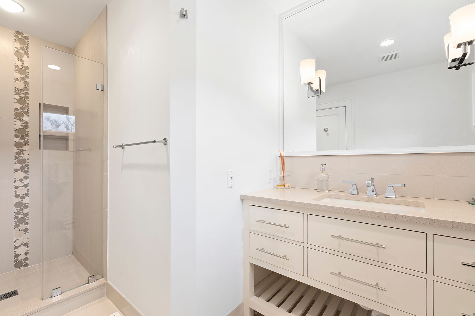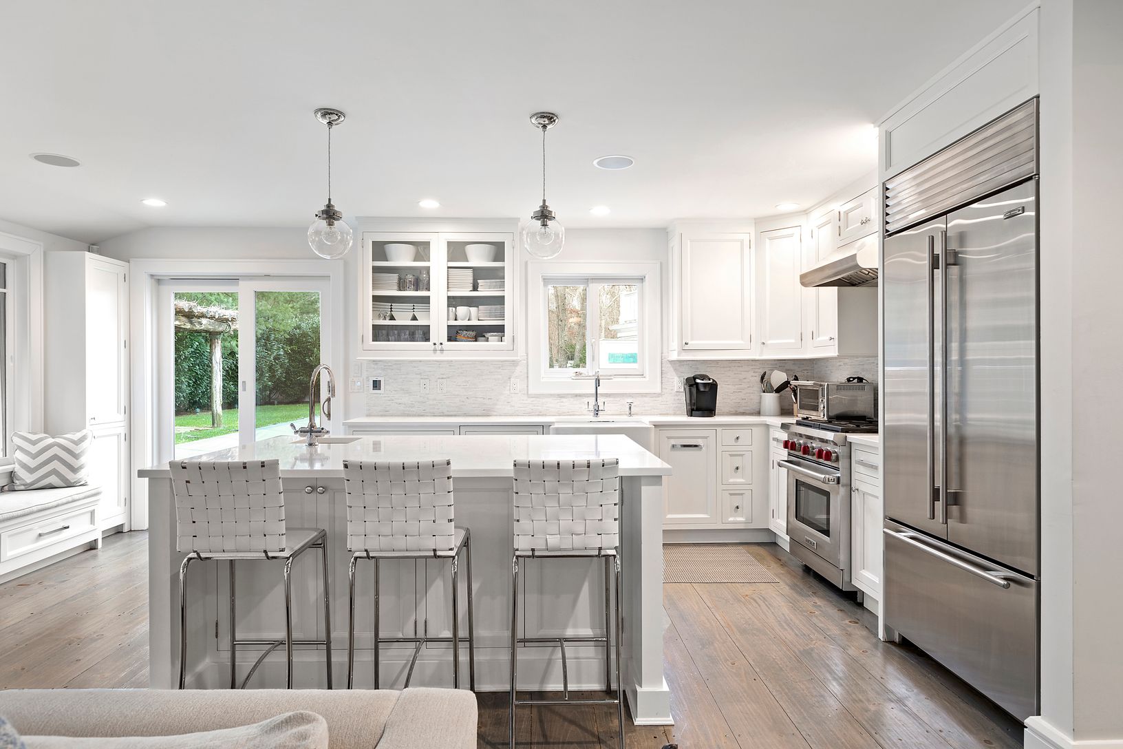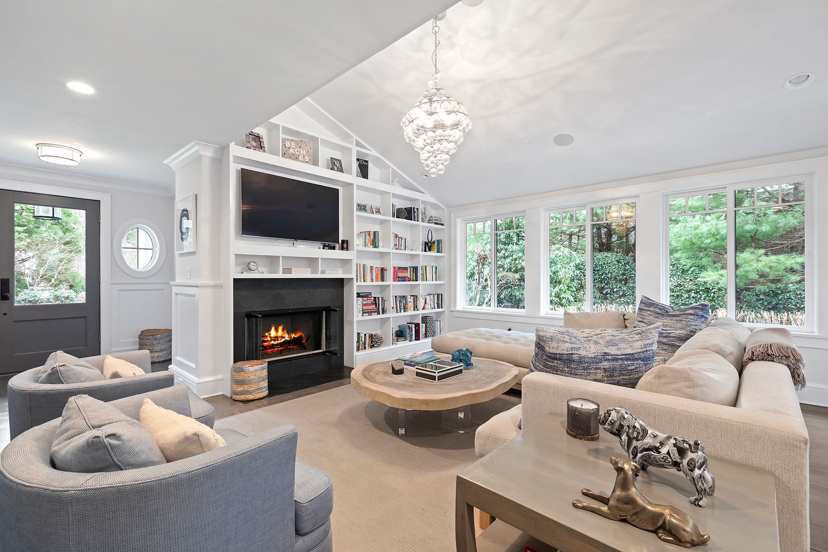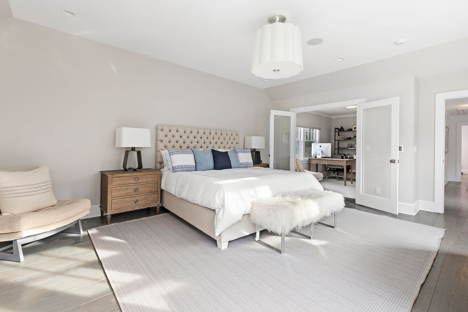 Enjoy the beauty and luxury of East End living in this completely, impeccably-renovated two story farmhouse style home, perfectly situated south of the highway in desirable Wainscott! The turnkey 4+ bedroom, 6 bathroom gem sits on nearly a half-acre of lovely landscaped grounds and offers a charming front porch overlooking lush lawn, an upper deck, wonderful private rear outdoor environs for lounging and entertaining, a large heated swimming p