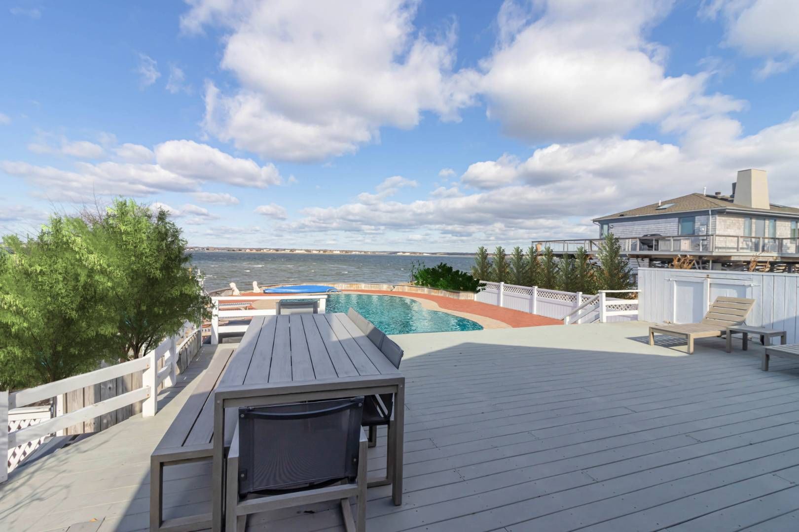 Summer days are calling. This beach house offers 4 light-filled bedrooms, 3 full baths, full kitchen, living and dining room. 3 bedroom's on the main level and primary on second level. Quality finishes throughout and breathtaking views. Perfect to entertain around the heated gunite swimming pool and expansive deck and enjoy sweeping views of Moriches Bay. Right-of-way to the ocean.