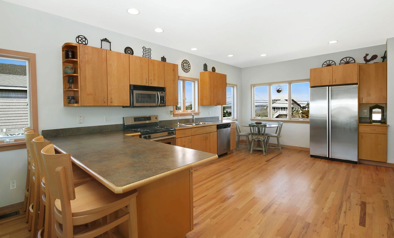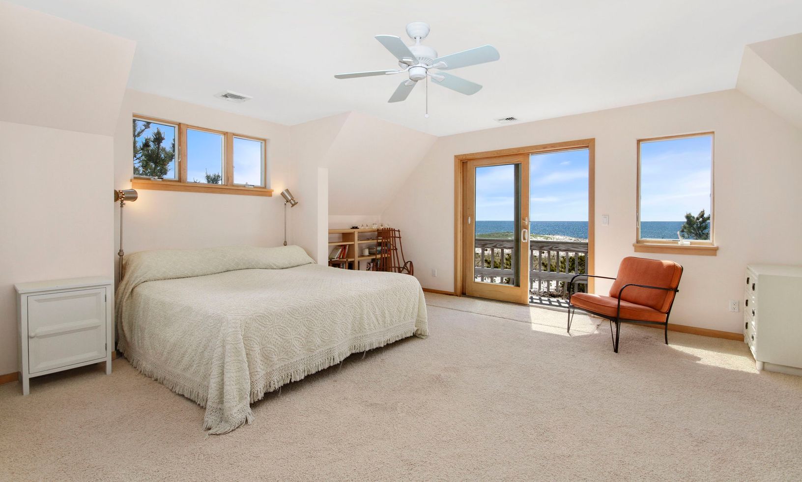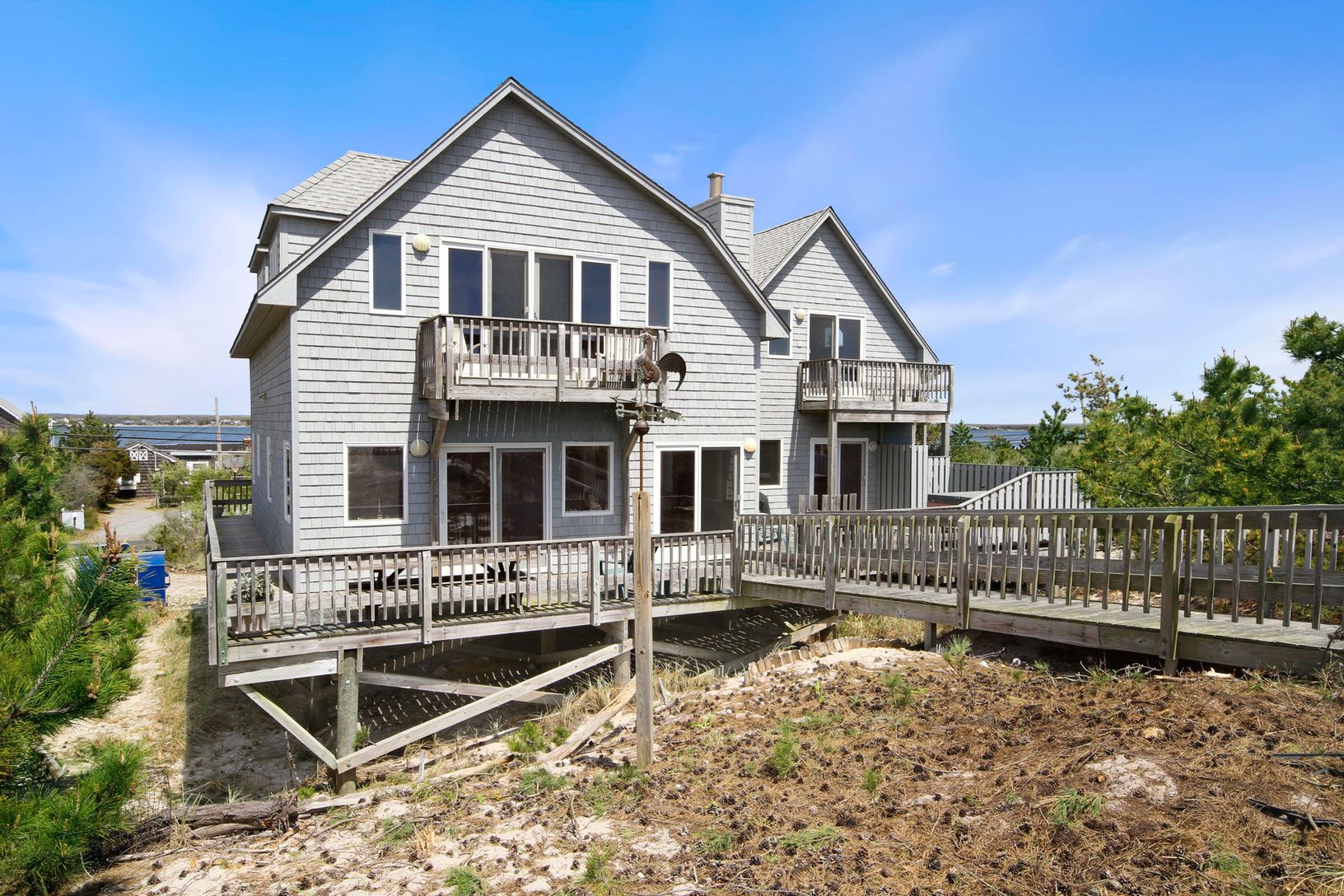 In addition to offering 85 ft. of ocean frontage and sunset/sunrise and romantic moonlight views, this 2,500 sq. ft. bright contemporary has 3 bedrooms, 3 baths, spacious master suite with bay and ocean views, a private deck, ample storage and bath with jacuzzi tub. There's also a living room with stone fireplace and sliders to deck, a spacious eat-in-kitchen, a den/office (or extra guest bedroom), a soaring artist's loft with deck, relaxing h
