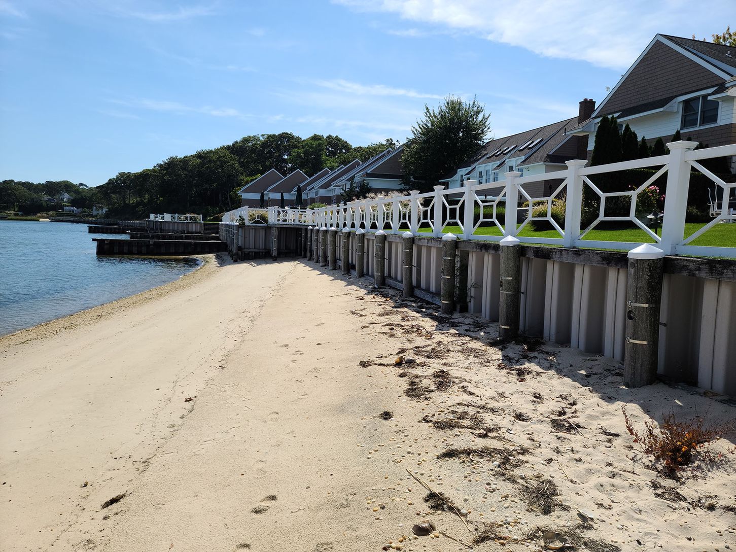 It's a lovely quiet place situated across the street from paradise. This private 2nd floor condo is a corner unit with water views from the front bedroom, living room and kitchen. In unit washer & dryer as well as ample closet and storage space. This condo is located in a great area and complex (Shinnecock Bay Club), highlighted by a private beach and pool across the street that overlooks the Shinnecock Bay. You are only 5 minutes to the o