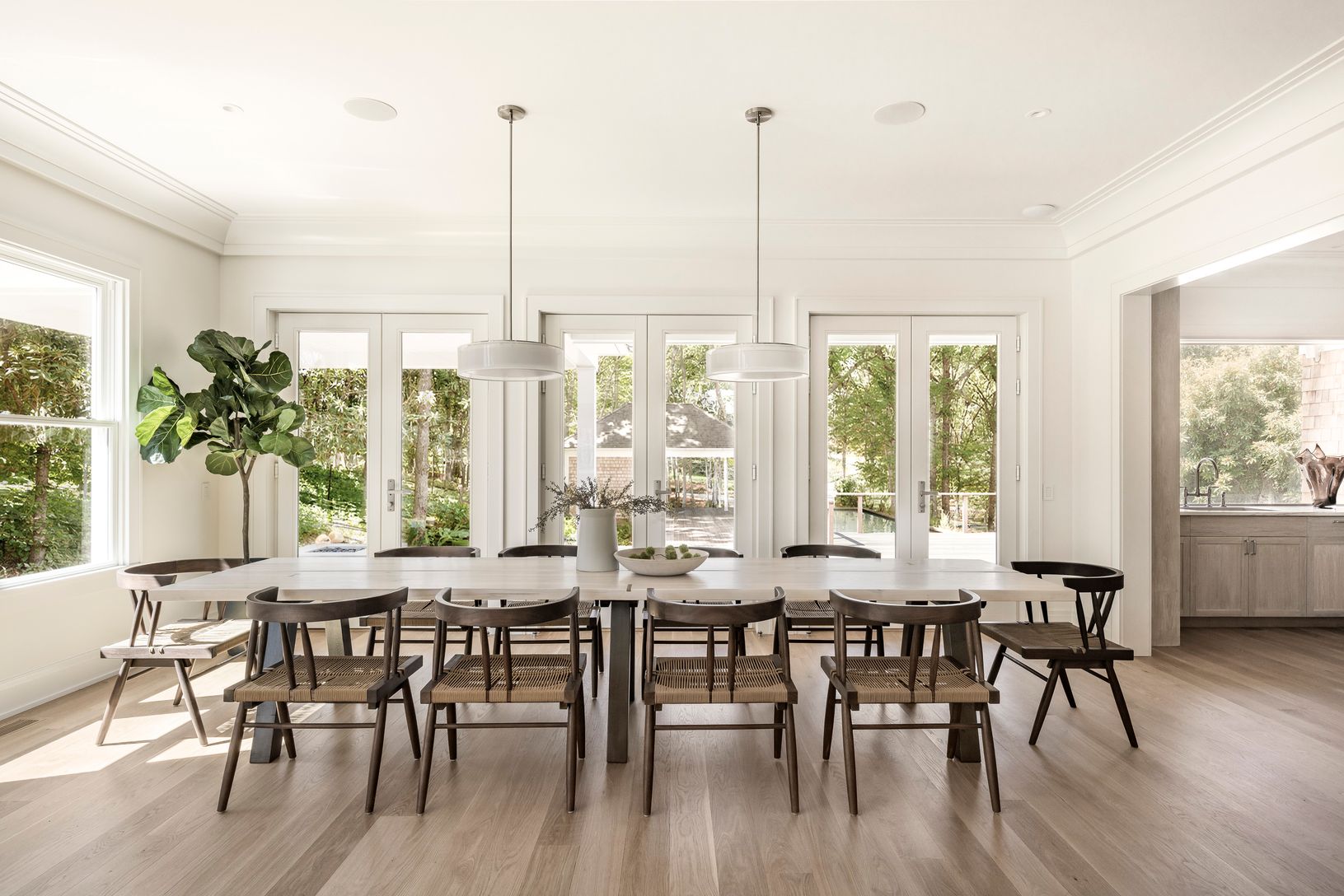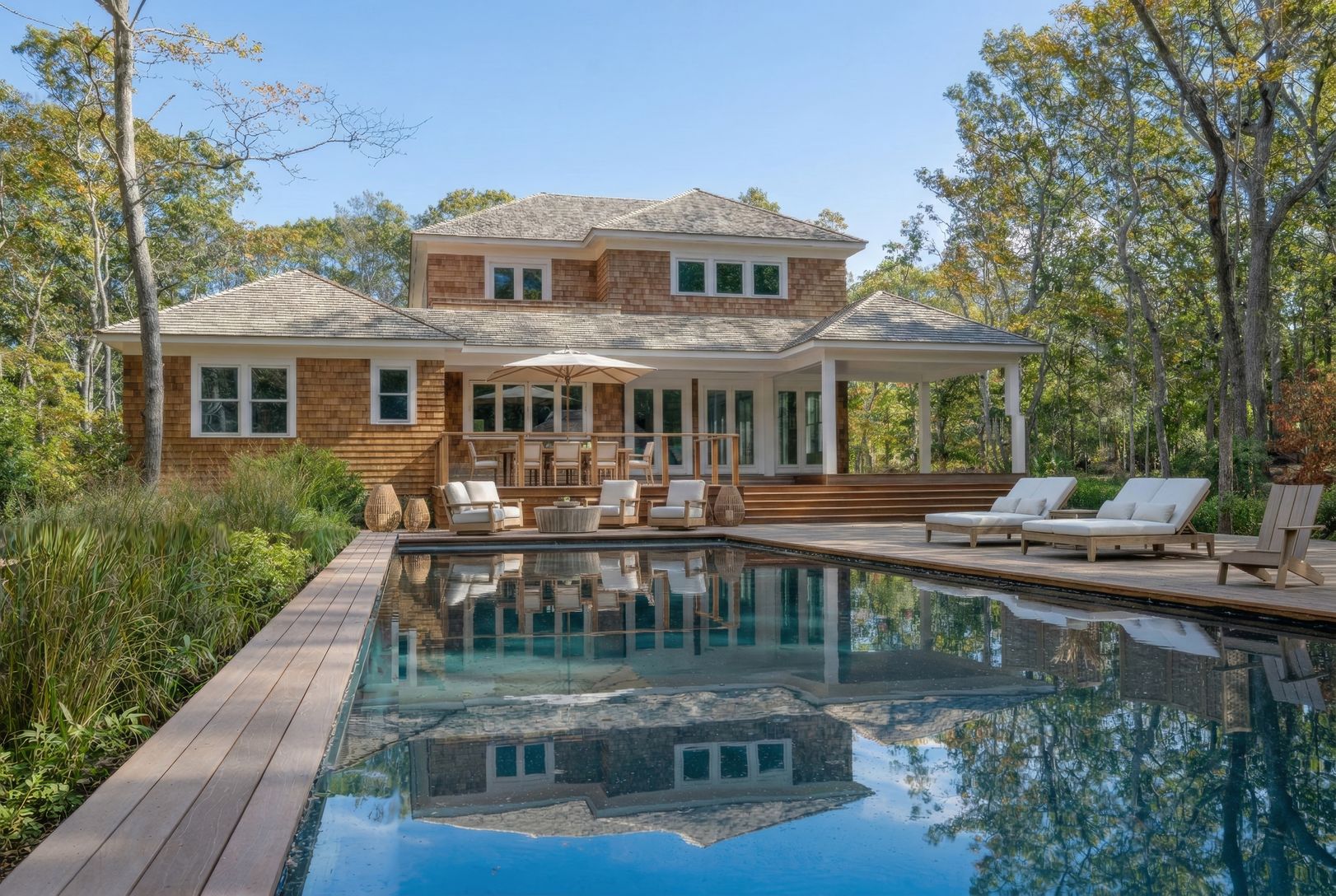 Tucked into 2.8 wooded acres in Amagansett North, 62 Canvasback offers privacy, scale, and a home designed equally for entertaining and quiet weekends. Designed by architect Andrew Pollock and built by fourth-generation builder Ronald Webb, this newly constructed residence draws from the traditional Hamptons vernacular—cedar shingles, white trim, and long eaves—reinterpreted through more modern rooflines and proportions, resulting in a fresh t