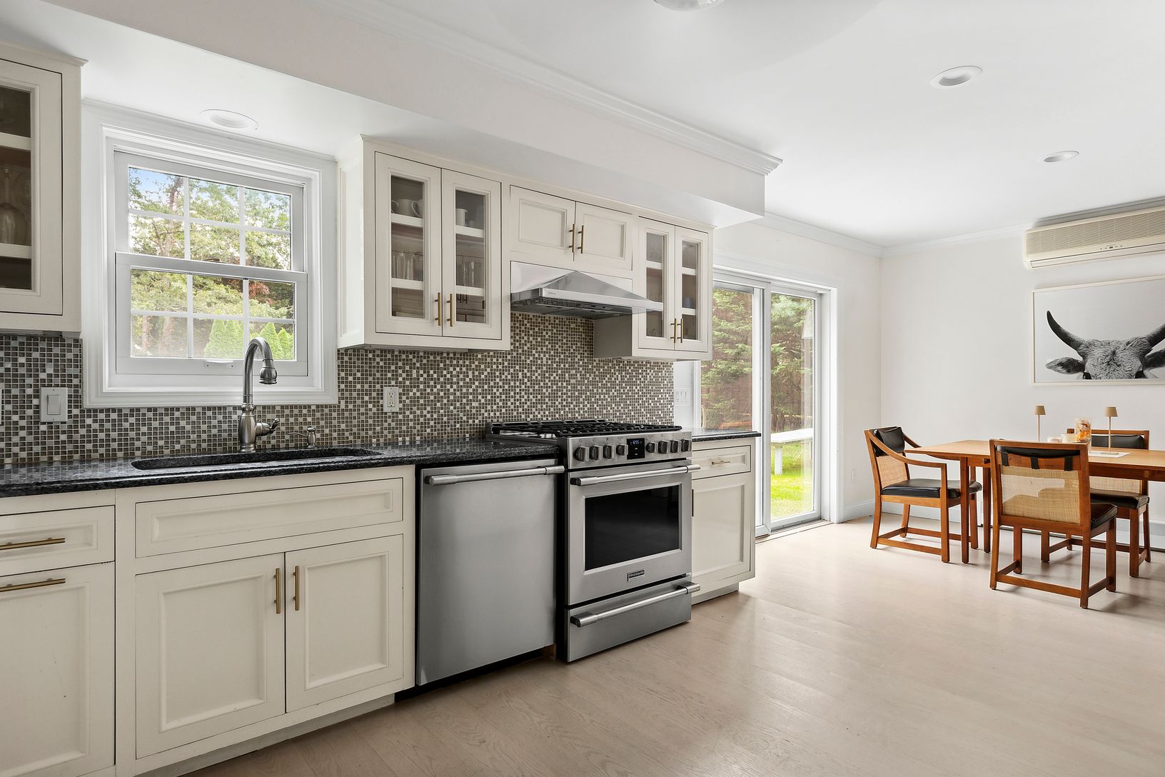 This turn-key, two-story shingled traditional in a quiet Springs neighborhood checks all the boxes. The charming home offers four-bedrooms, two-and-a-half-baths, and has been beautifully updated throughout. Upon entering, you'll find a cozy living room with a wood-burning fireplace which leads into the kitchen and dining area at the rear of the home. A separate side entrance opens to a smaller den that can double as an office or playroom. Upst