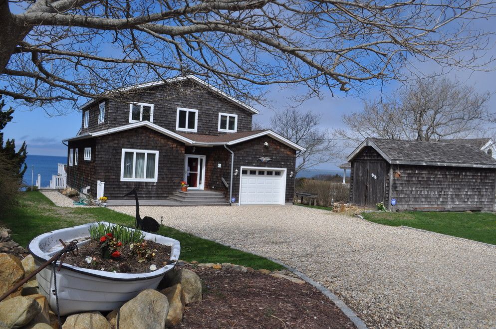 This fantastic waterfront location revels in sunsets and beautiful views of Gardiner's Island and Fort Pond Bay. You can appreciate this classic setting from just about every window in the home in addition to the large deck capturing breathtaking views, fresh air breezes and unforgettable sunsets. Offering 4 bedrooms, two and half baths, gas fireplace, cherry kitchen cabinets, den with glass french doors, garage, and large shed.