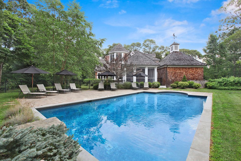 Elegant two-story Traditional privately sited on a beautiful property in Georgica, East Hampton. Over 7,000 sq. ft. of glamorous living space. Features include a grand double height entry foyer, formal living room with fireplace and separate bar area, fabulous professional kitchen with open TV room and breakfast area, and a stunning formal dining room. First floor master suite with fireplace and grand master bath. Five additional bedrooms, 8-