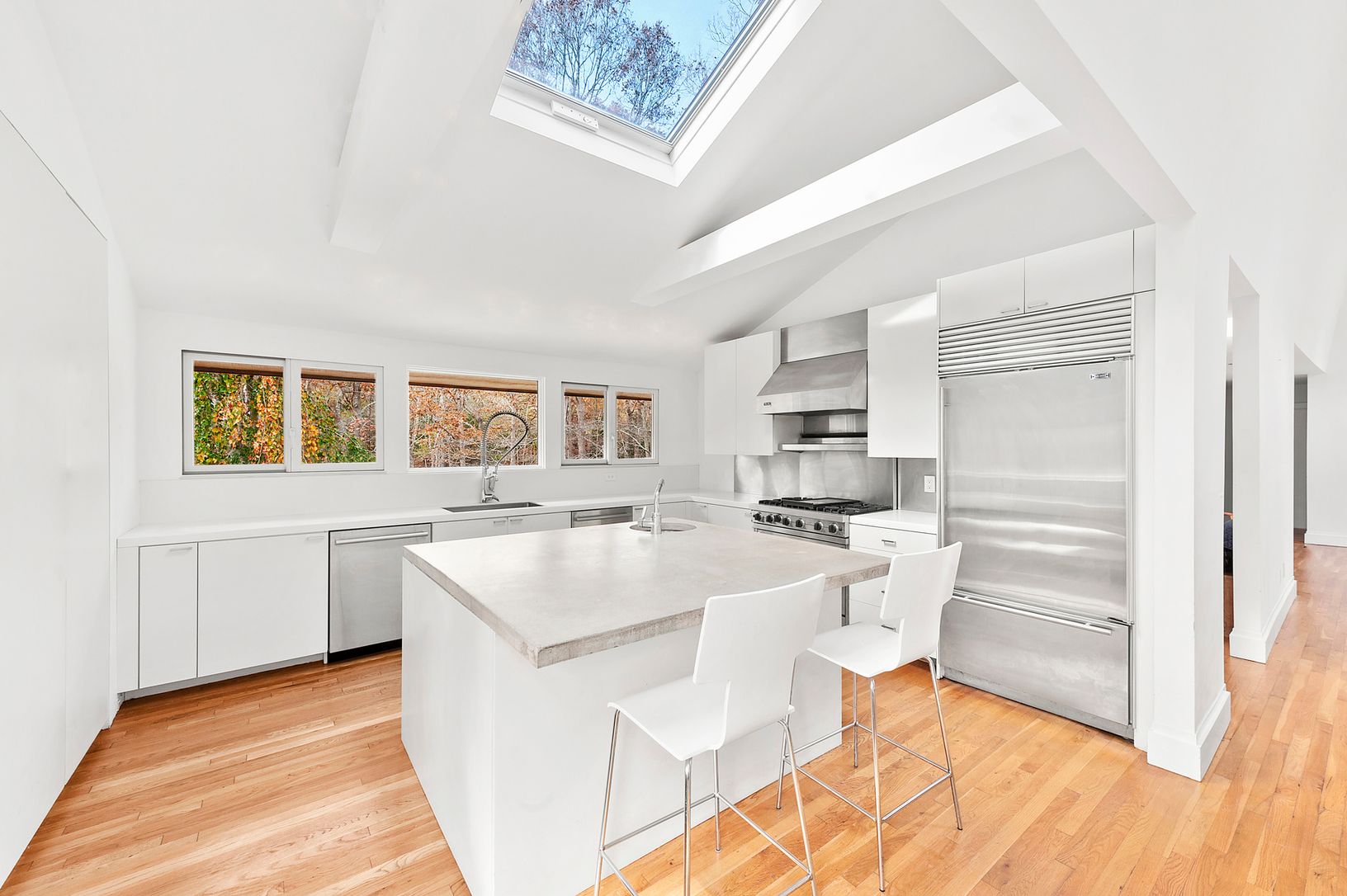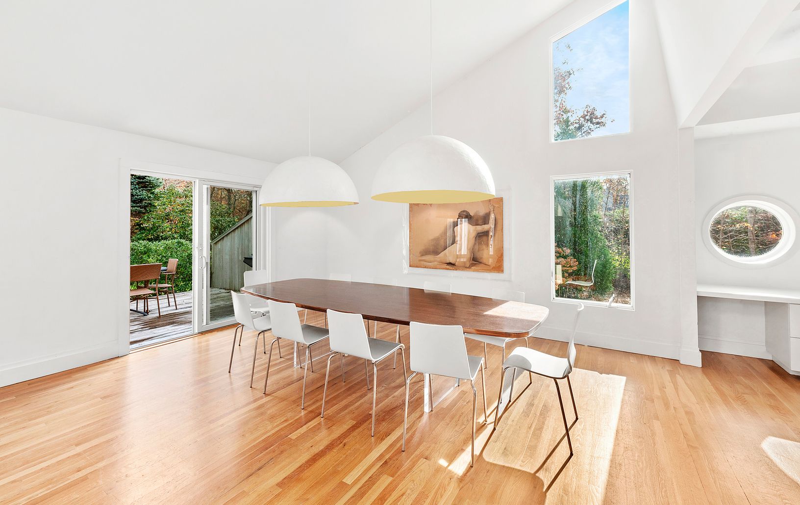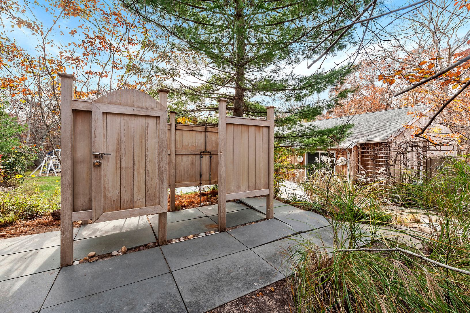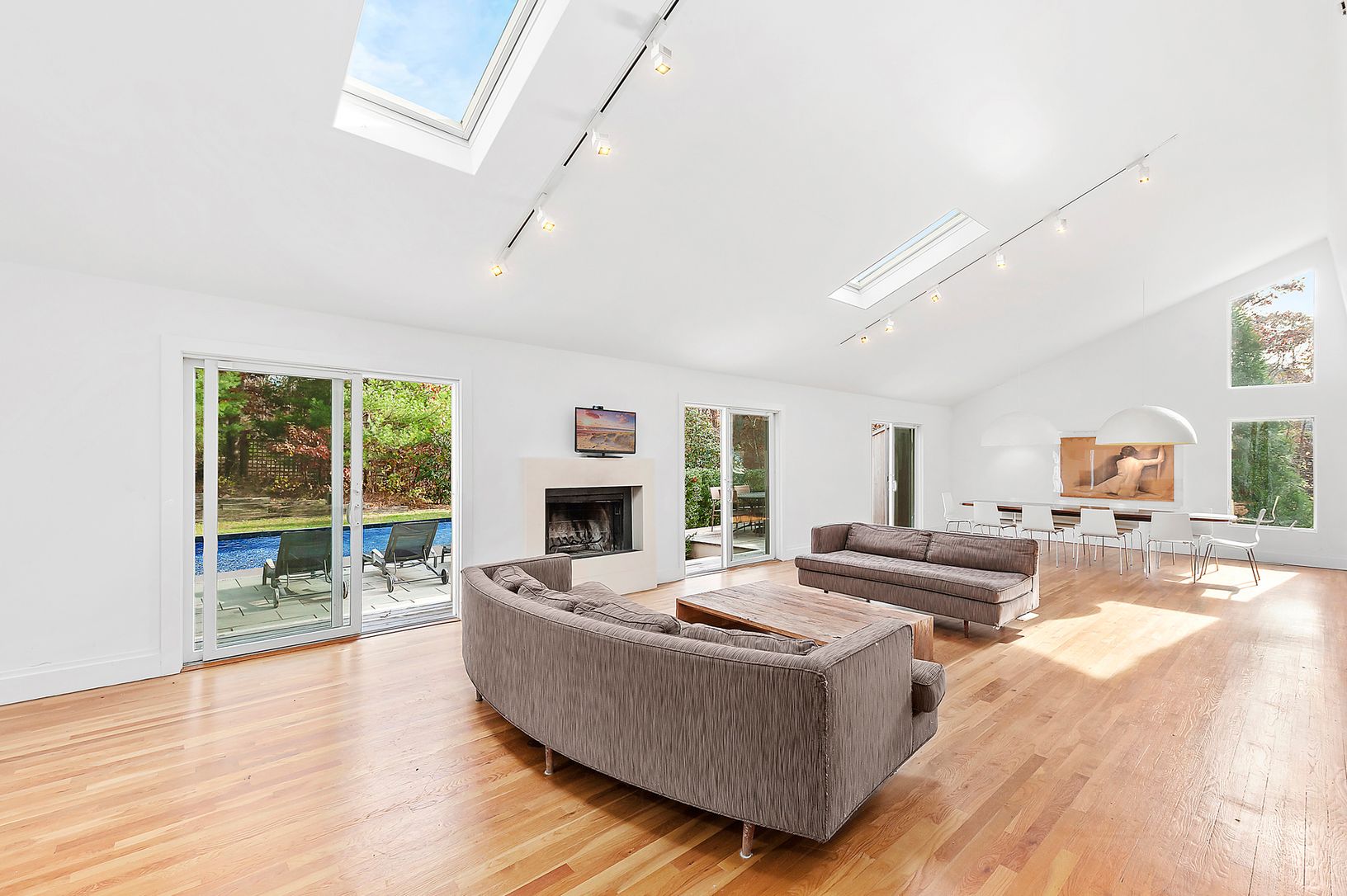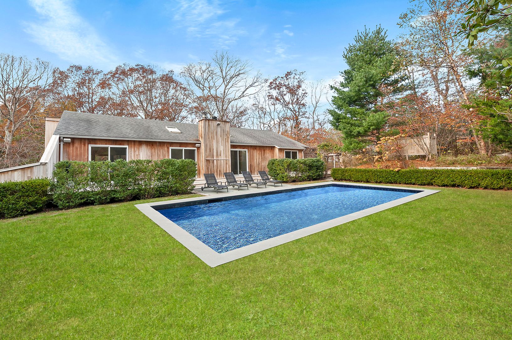 Just a block from beautiful Gardiner's Bay beach, this bright contemporary has an open living area with a gourmet kitchen, en suite master, three bedrooms, two and a half bathrooms, and high ceilings. Open living room with a fireplace. Large sliding doors lead to a generous deck and heated pool. Completely private home on almost an acre of beautiful landscaping. An incredible value. Folio #: 27898