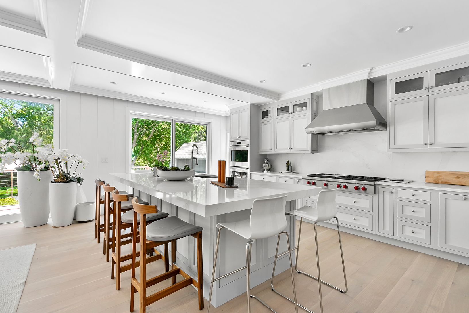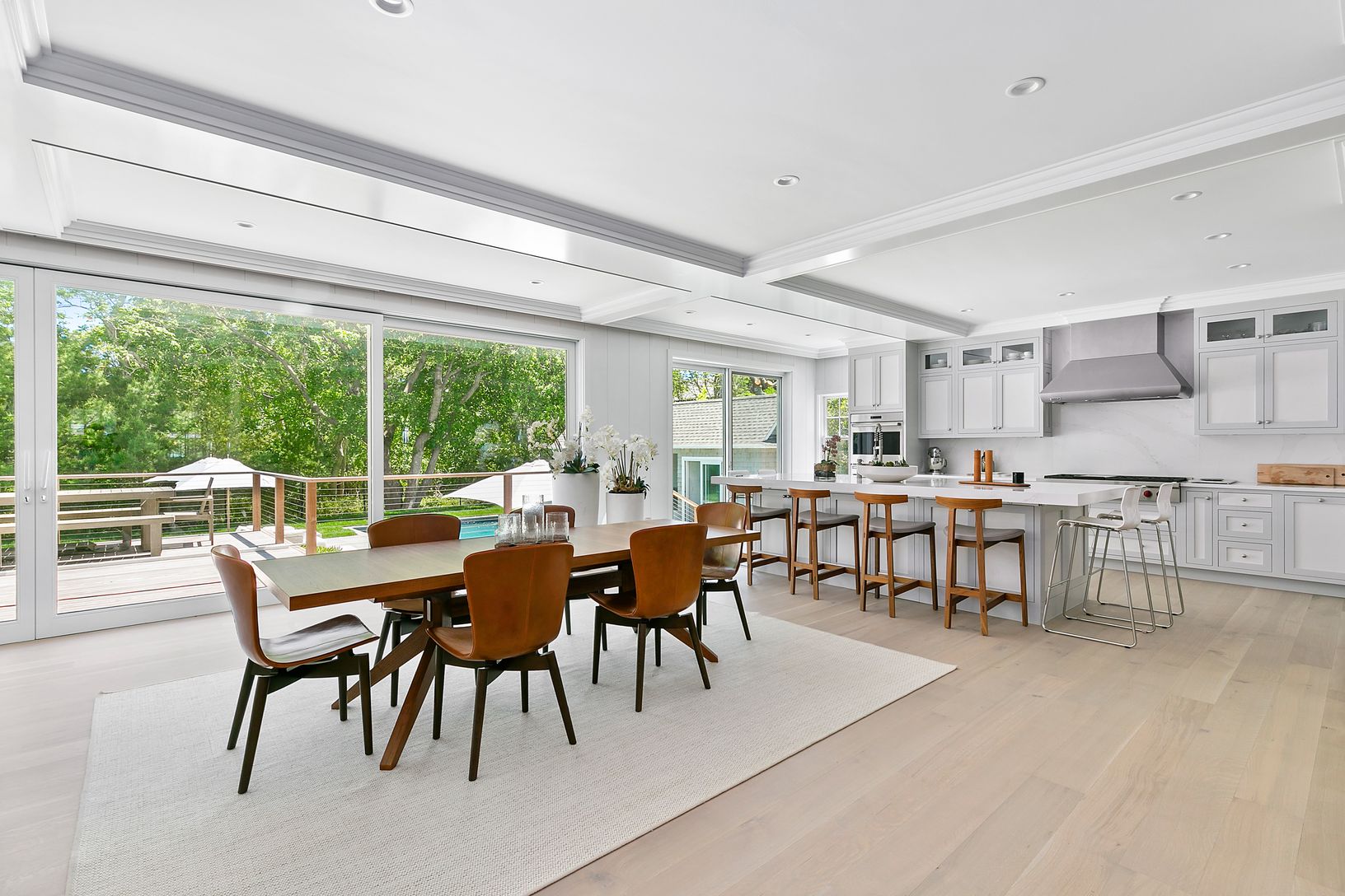 This practically new 6000SF home in the heart of East Hampton Village boasts dramatic and elegant interiors and custom finishes. With 5 ensuite bedrooms, including 3 lavish primary suites, comfort meets sophistication in every corner. The heart of the home has an open floor plan featuring an eat-in kitchen with breakfast bar, great room with fireplace, and walls of glass that slide open to merge indoor and outdoor living. Outside, you'll find