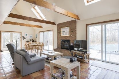 This cleared 1.3+/- acres, with southern exposure, is located on a quiet cul-de-sac approximately one mile from Amagansett Village and the ocean beaches as well as the train station and Jitney stops. Already on this property is a four bedroom, four bath contemporary home with both first and second floor master suites, an open floor plan including the kitchen, dining area and living room with a wood-burning fireplace and multiple sliding glass