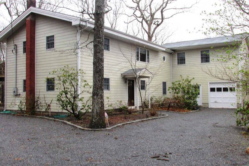 Traditional upside down home in Southampton Shores. This home has two bedrooms down with an office and a one car garage. Upstairs an open layout with water views of Peconic Bay, kitchen, den, living room, master bedroom. Lots of possibilities. The Shores has community beach, marina, tennis, ball park, and basketball.