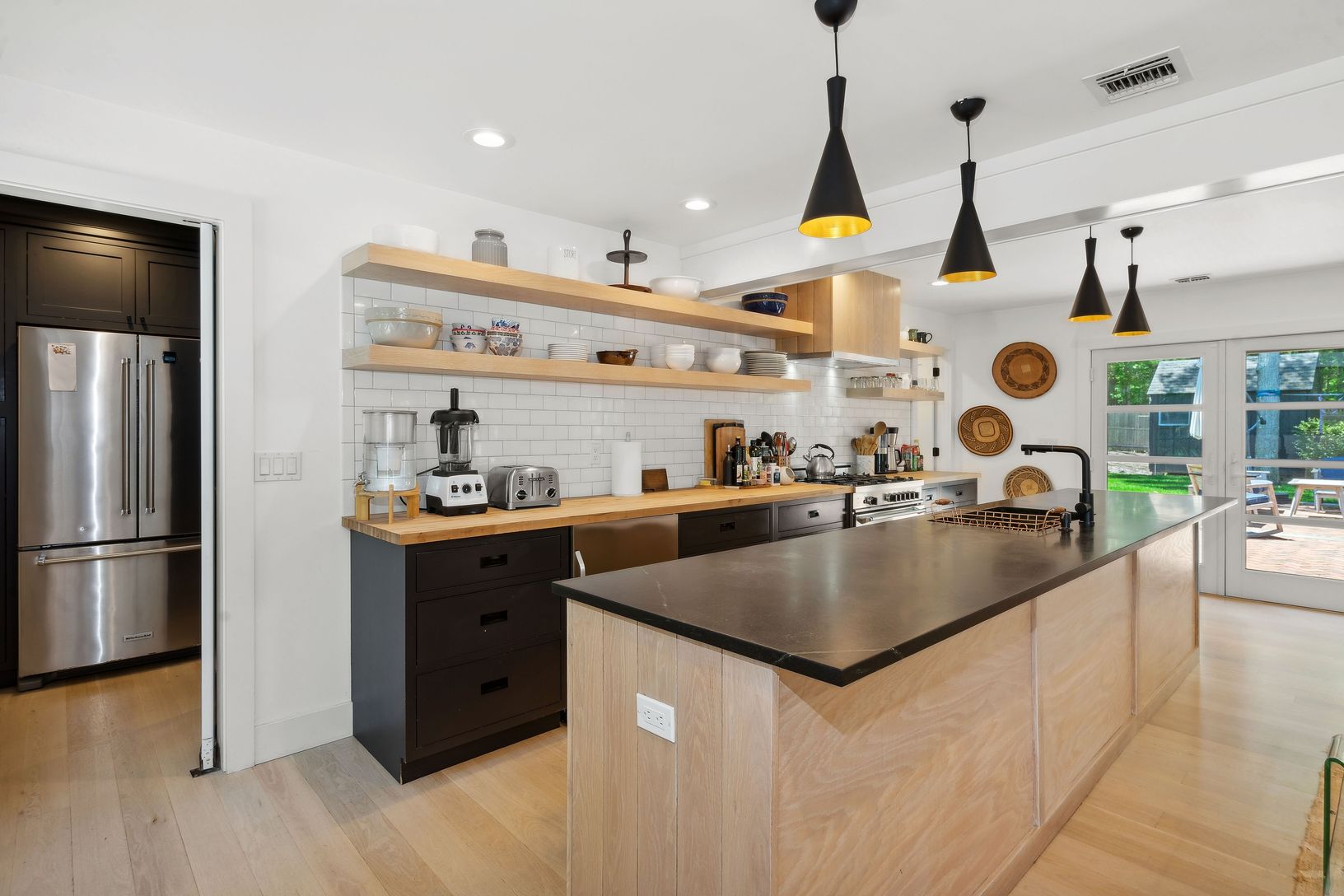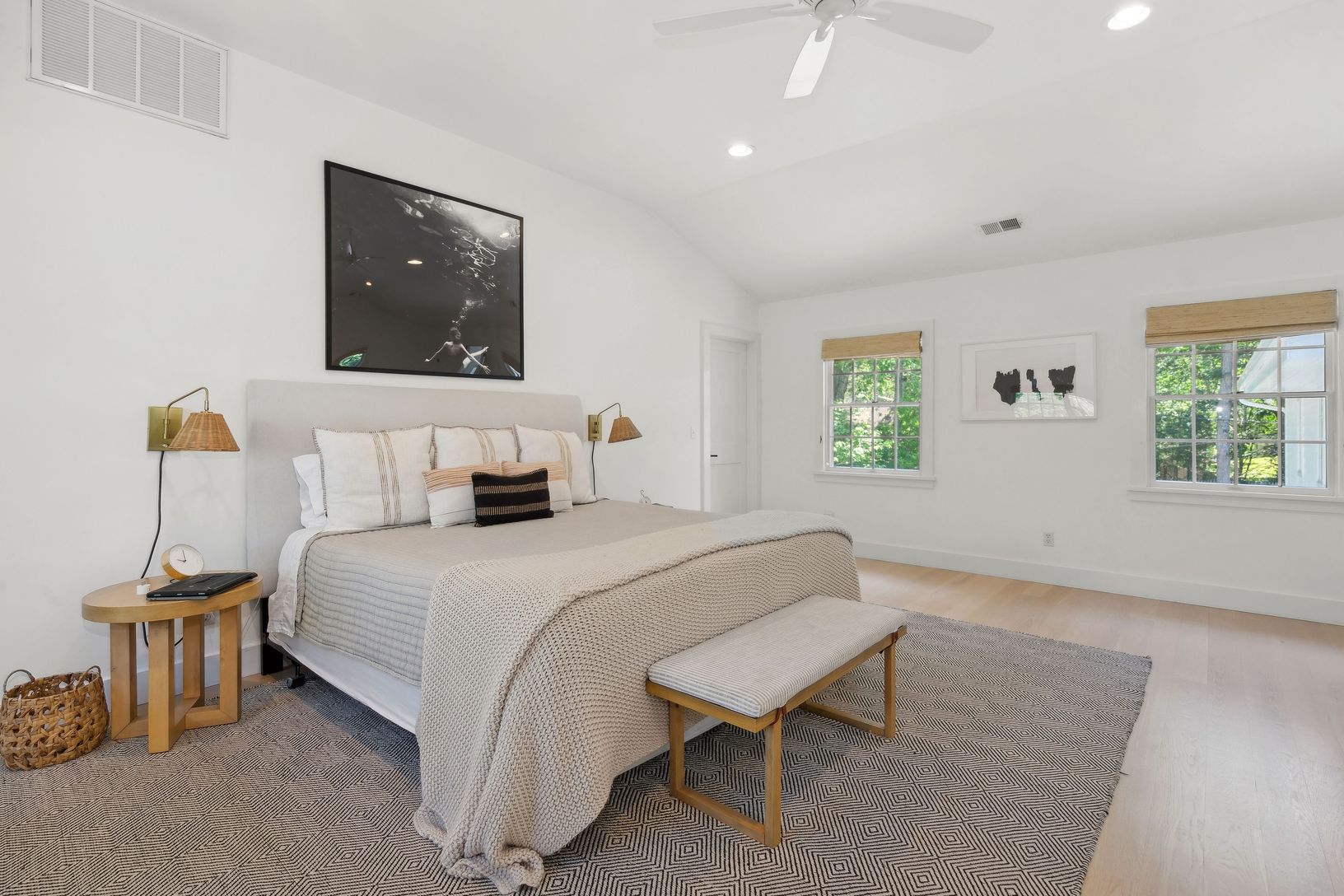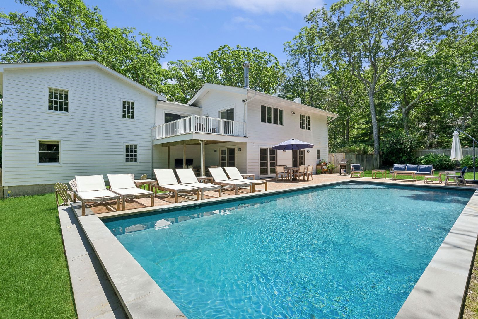 Enjoy everything Southampton has to offer in this brand-new home with water views in sought after Southampton Shores. This stylishly decorated modern Farmhouse has four bedrooms and four bathrooms. The second-floor den with balcony, overlooks the pool and water views, large living area that opens to kitchen and dining area with walls of glass doors leading to the heated pool and peaceful backyard with water views of Wooley Pond. Great for ente