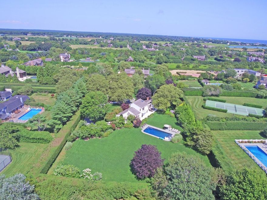 Sagaponack sea breezes and uber serenity will greet you each and every day when you build your new estate on 1.6 landscaped acres, a bike ride away from the ocean and Pierre's new market. This gorgeous tableau could support a new 9,000 SF+/- foot residence on three floors of living space, pool, pool house and possibly a tennis court. A sensational landscape plan by Charlie Marder, highlighted at night by extensive grounds lighting, frames the