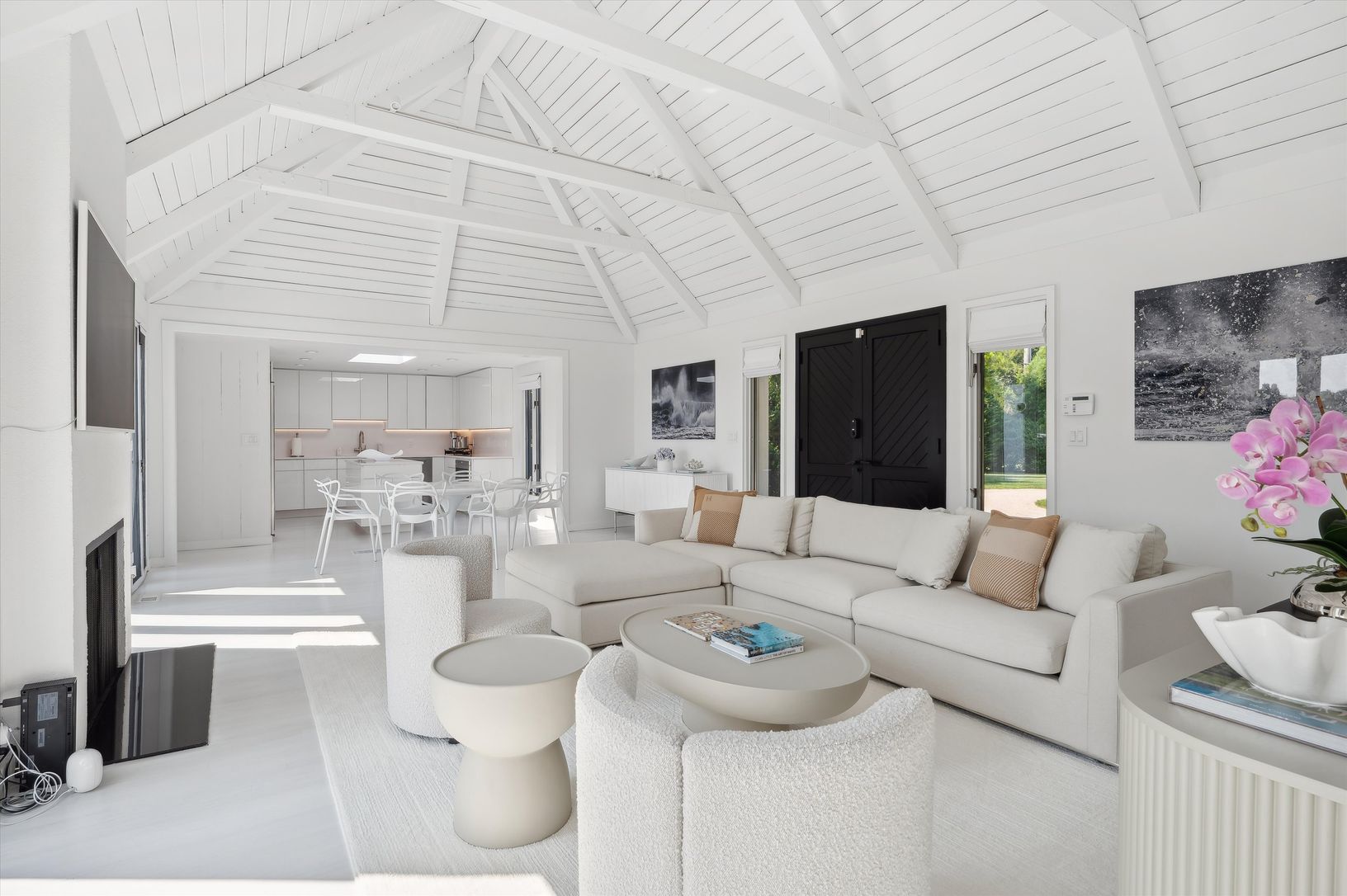 Located in the heart of Sagaponack just minutes to Sagg Beach with spectacular southern and western sunset views over 40 acres of adjacent reserve, this modernist home features amazing interior design throughout the residence. Oversized outdoor living areas call attention to the open, spectacular southern views of reserve; a 50 ft. heated saltwater Gunite pool and a separate, private architectural pool house including a private bath and outdoo