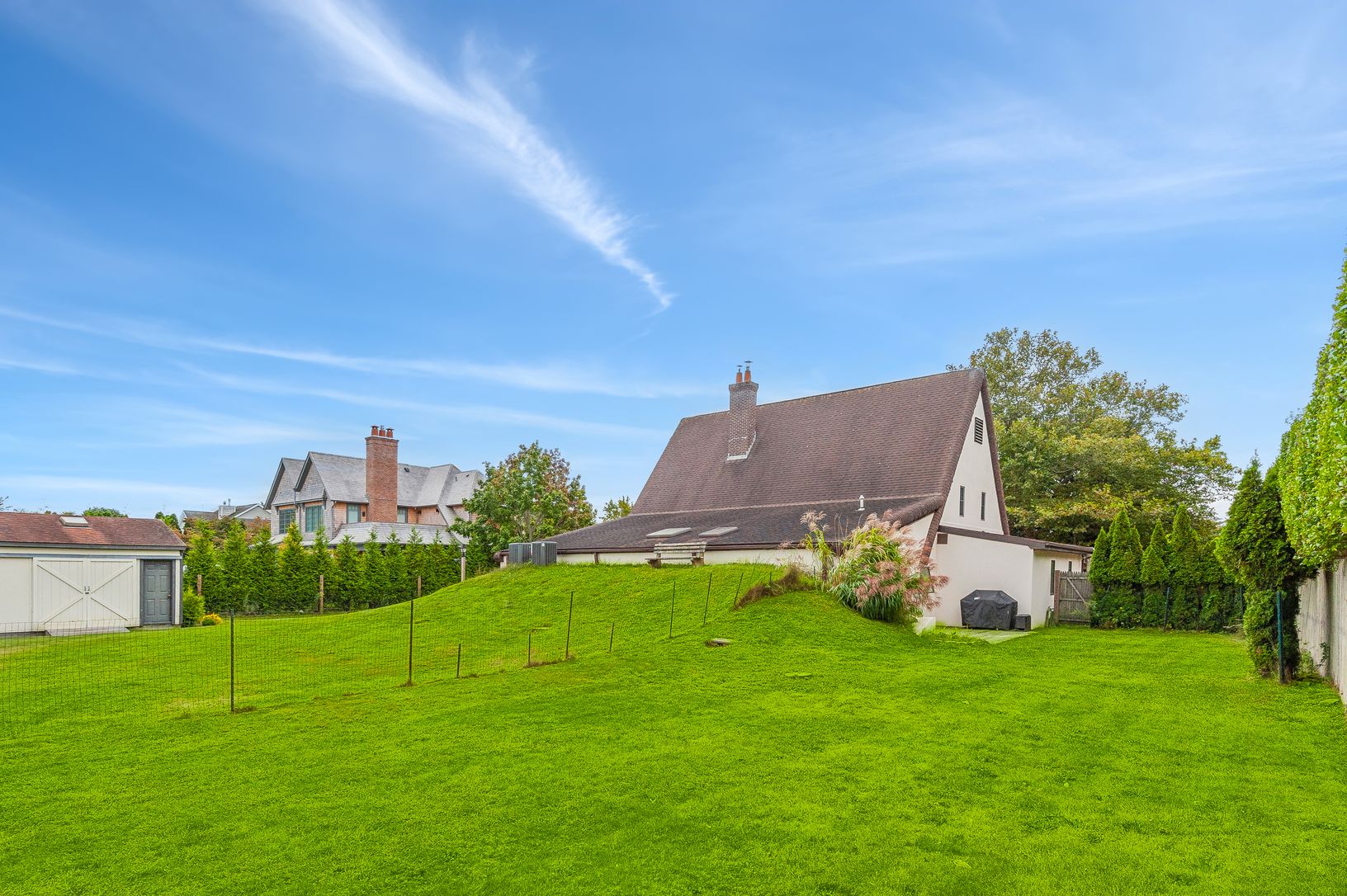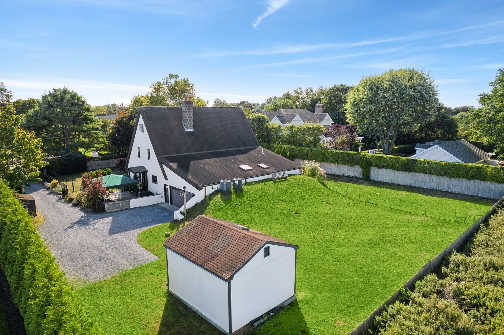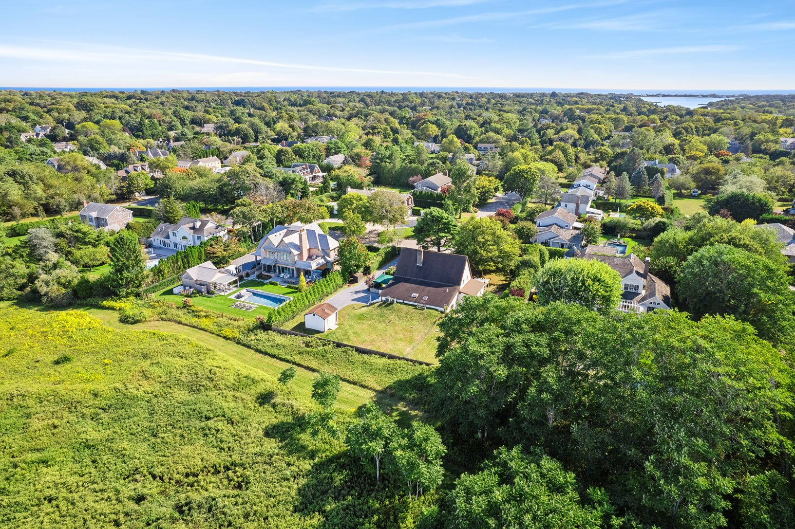 This unique, traditional home is perfectly sited on .50 of an acre, abutting 7.2 acres of village agricultural land. With 4 bedrooms, 3.5 baths and plenty of room for pool and expansion, the possibilities are endless. The first floor has an en-suite primary bedroom and bath and large walk-in closet, additional bedroom suite with den, bath and private patio and the second floor has two additional bedrooms, bath, den and office. Central air, pas