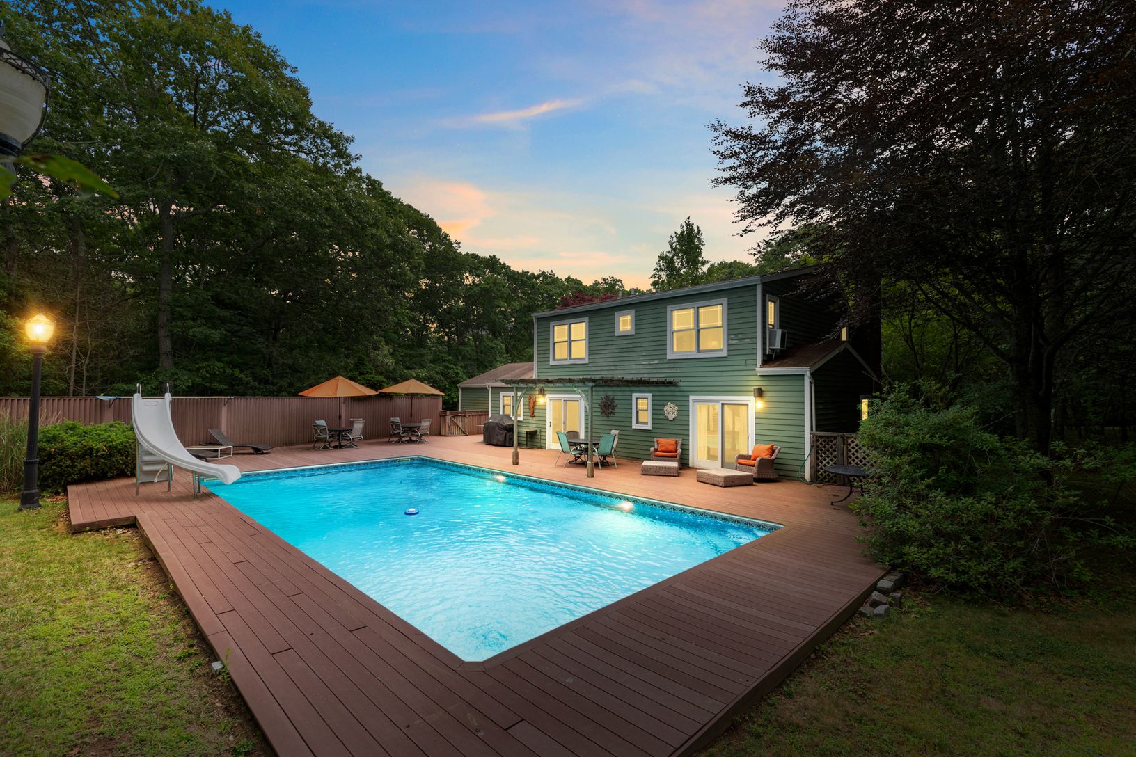 Ideally located at the end of an ultra-quiet cul-de-sac, this fantastic 1.7 acre lot features a 3 bedroom 2.5 bath home with 20x40 pool and attached 2 car garage. Located just minutes from the picturesque hamlet of Amagansett, with its vibrant shops, renowned restaurants and surrounded by world class bay & ocean beaches, this exceptional property offers a pre-existing clearing allowance and can support a substantial custom home. Enjoy the
