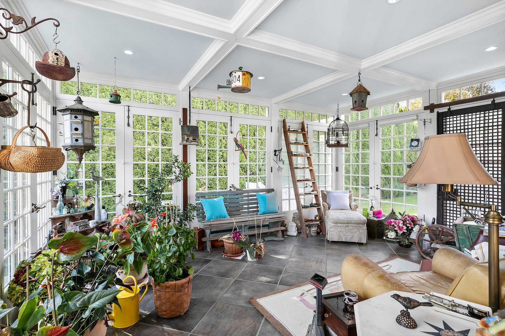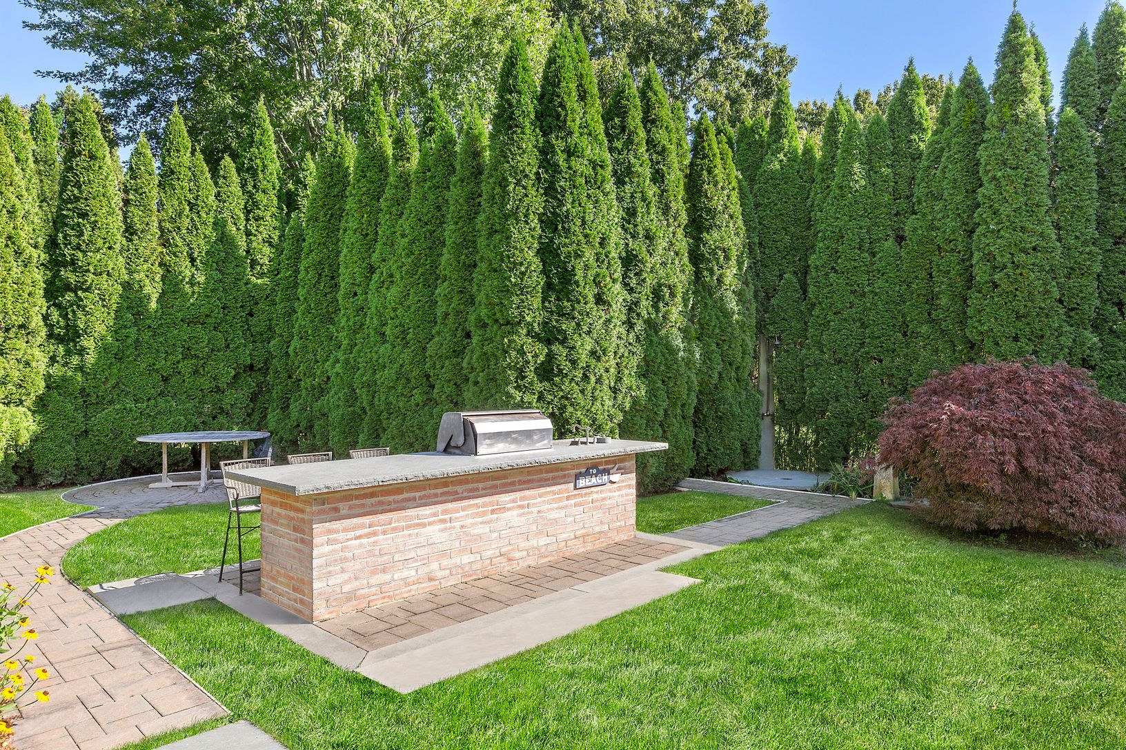 Set on 1 +/- acre, this turnkey estate is comprised of 4 bedrooms, 5 full bathrooms, and 2 half bathrooms, thoughtfully distributed between the main house and a finished apartment-style space over the garage. Offering spacious living areas throughout, the first level of the main house affords a living room, formal dining room capable of hosting over twenty people, custom kitchen with French doors leading to a rear terrace, separate office spac