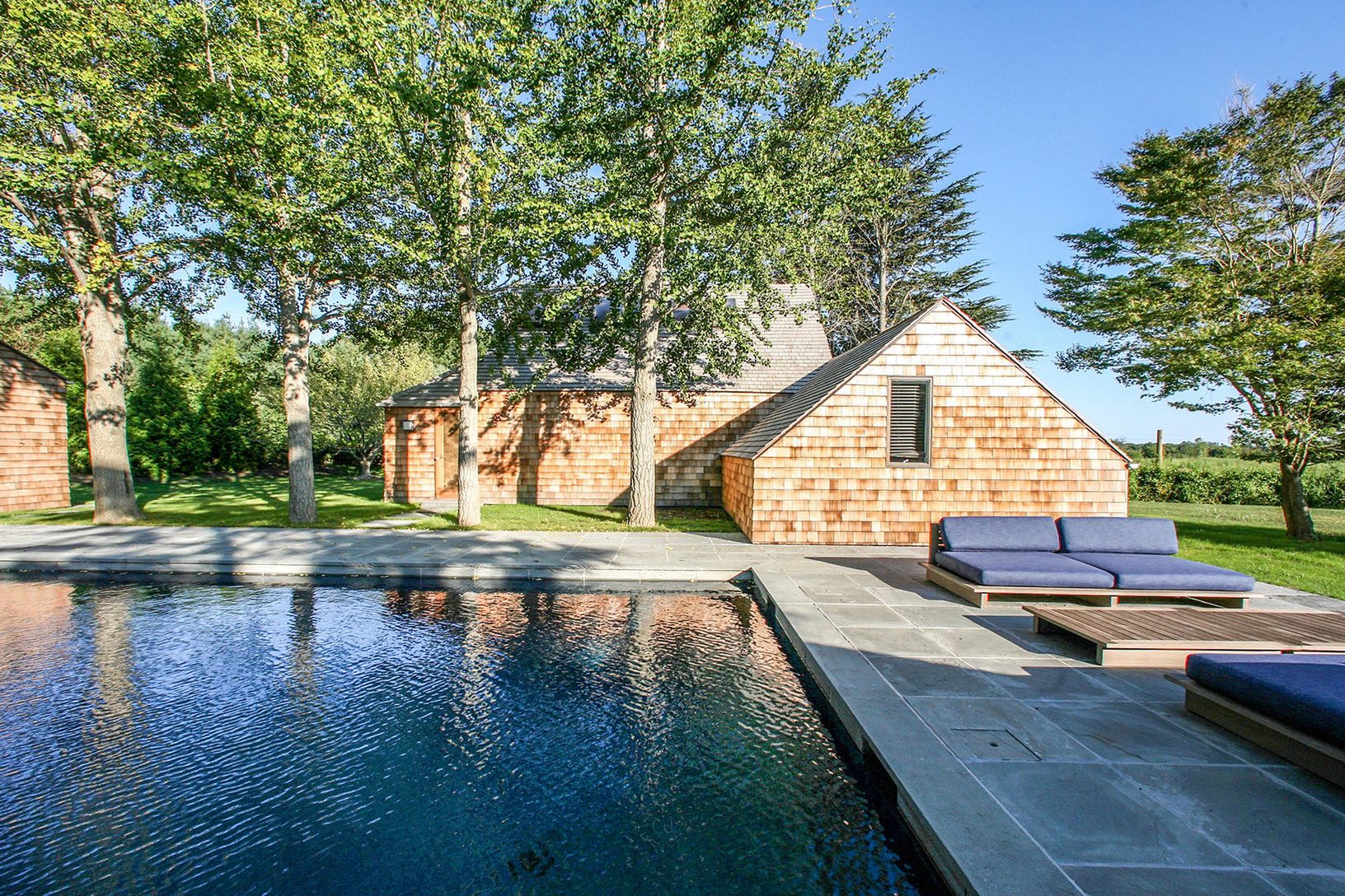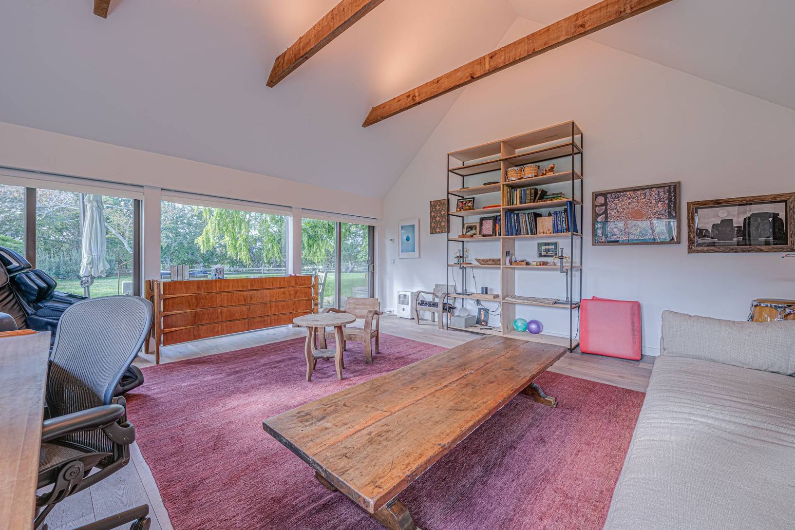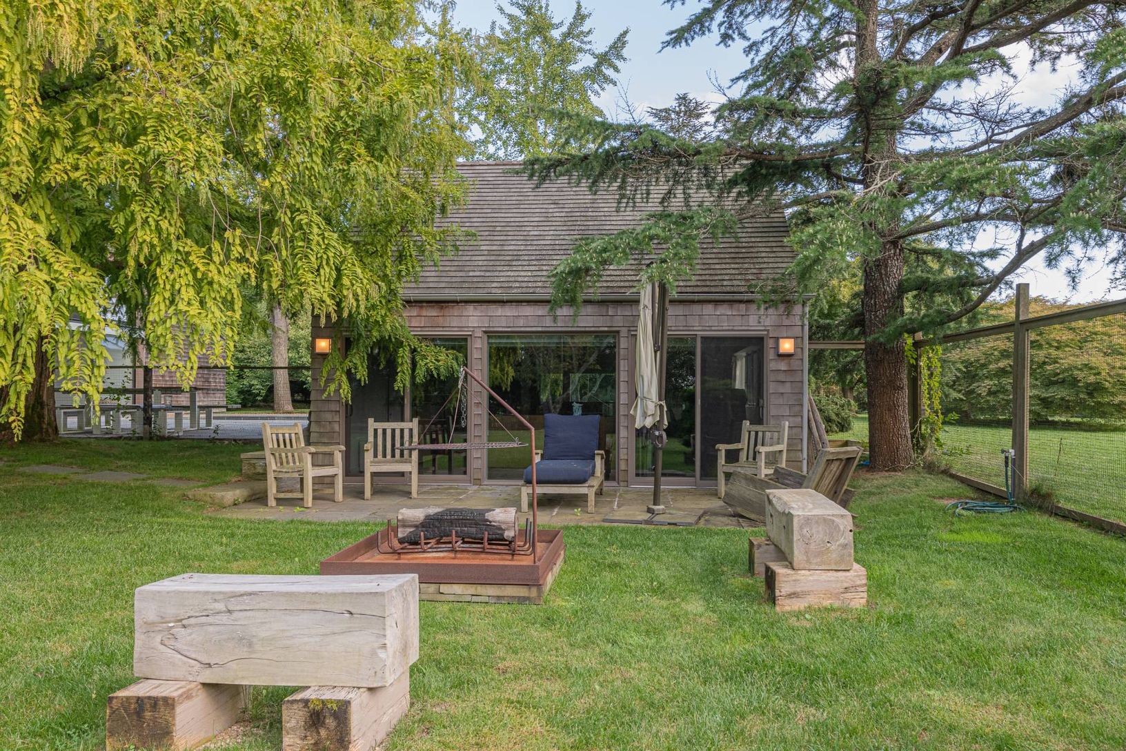 New to the market, enjoy this rare collector's opportunity to own the renovated and restored former home of pioneering architect, Norman Jaffe, situated on a stunning, exceptionally private 1.1-acre, flag lot on Lumber Lane in Bridgehampton. Revel in the signature hallmarks of the Norman Jaffe's famed design aesthetic that defines - to this day -- the modernist era of Hamptons living: strong geometric lines, warm interior finishes including na