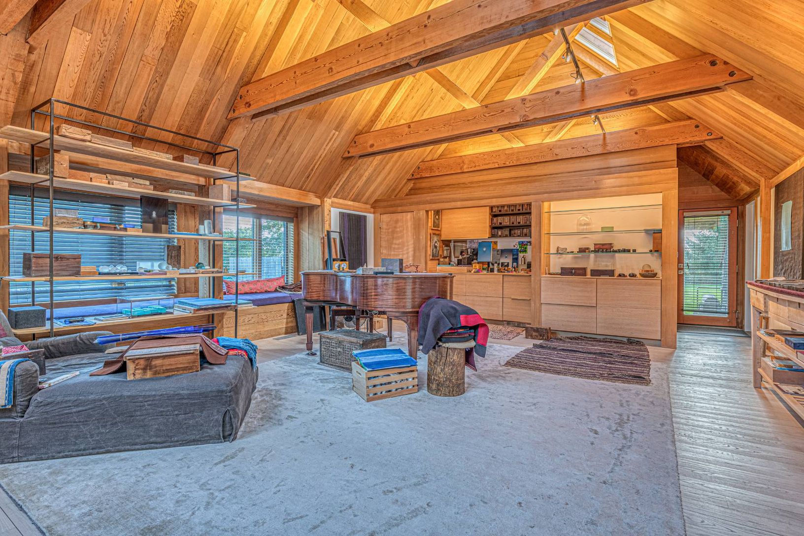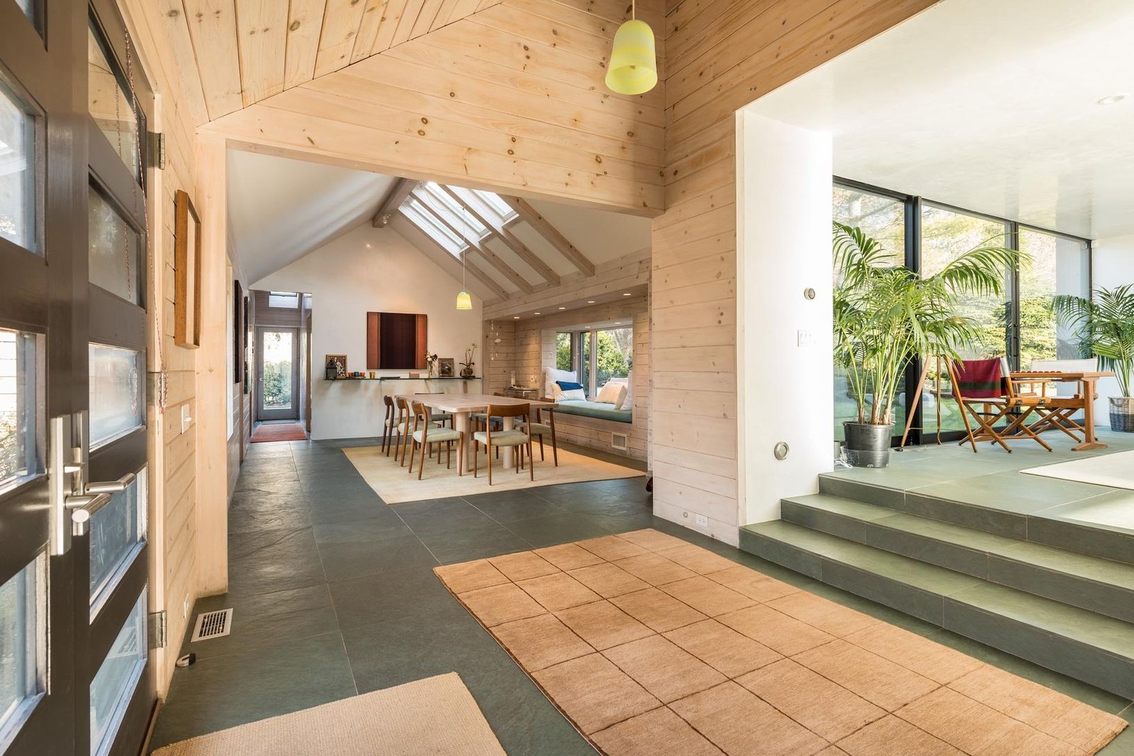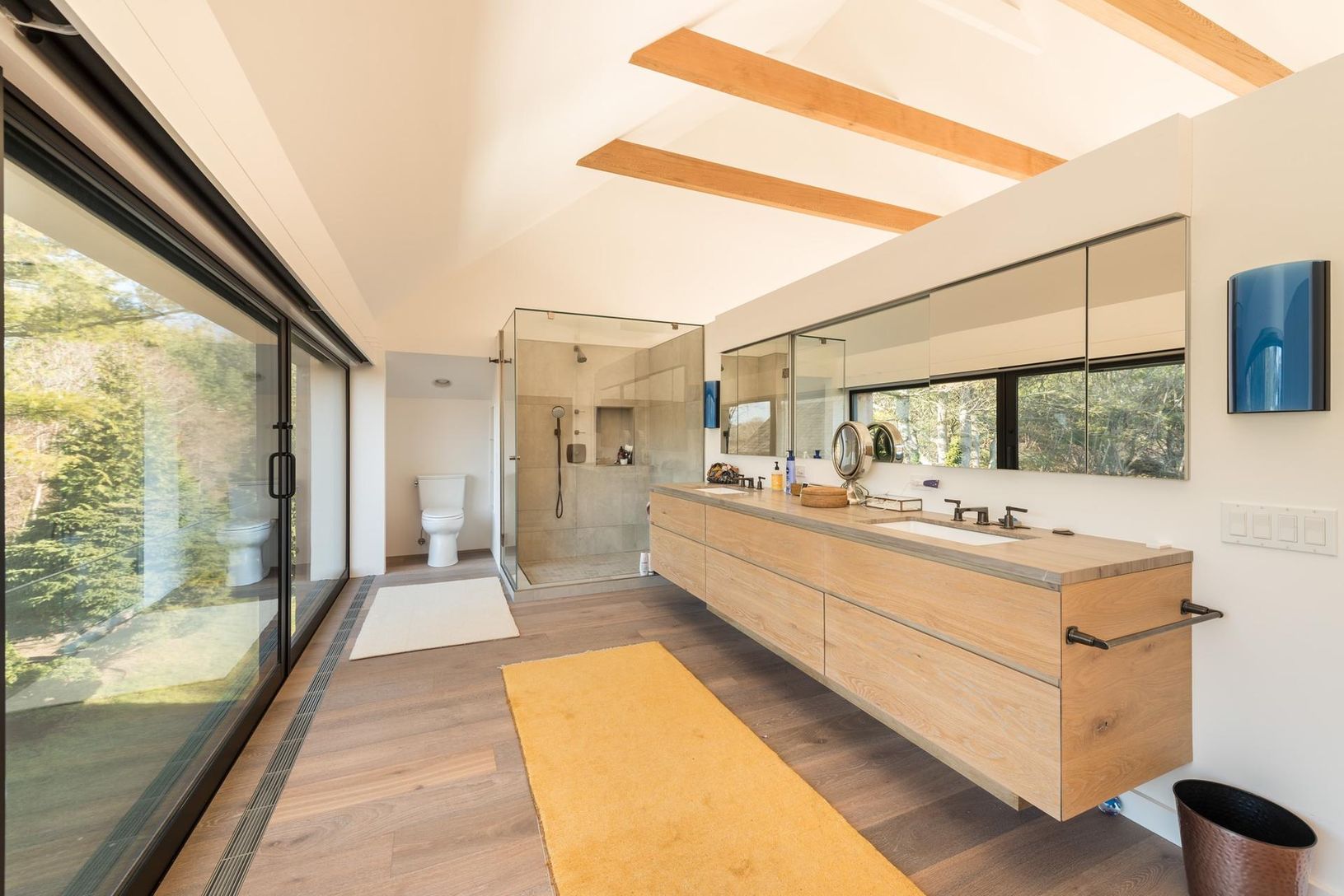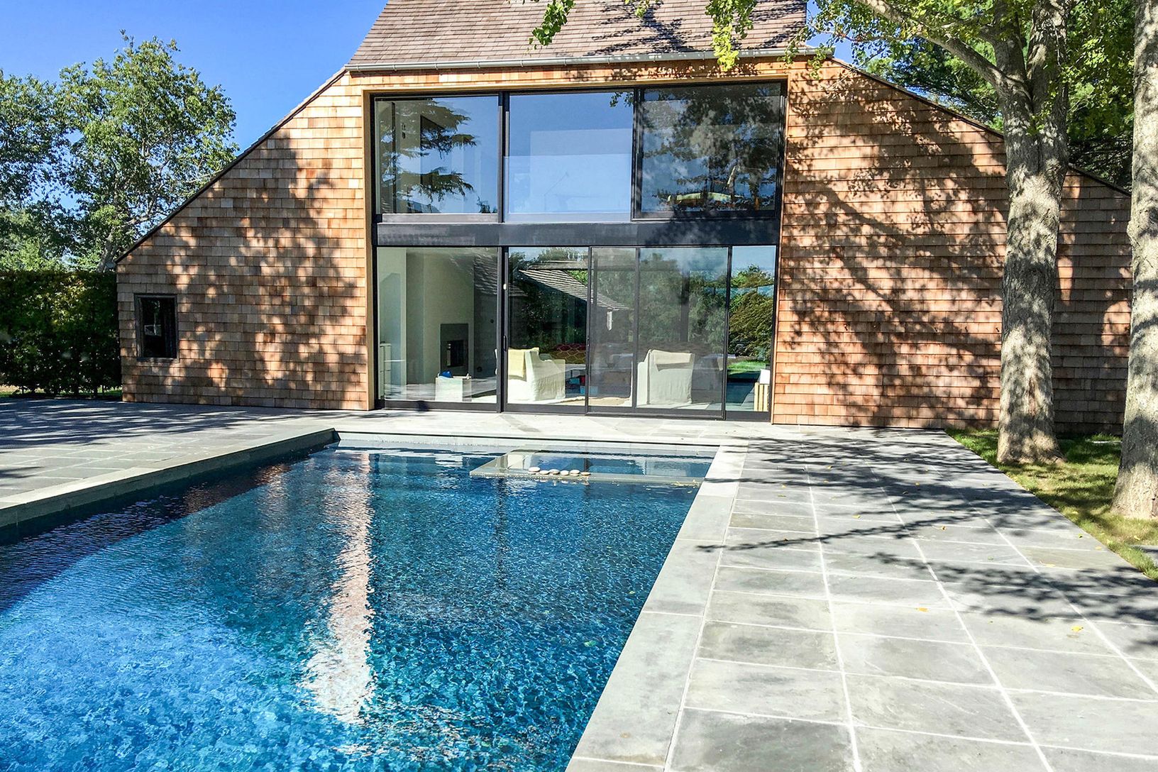 New to the market, enjoy this rare collector's opportunity to own the renovated and restored former home of pioneering architect, Norman Jaffe, situated on a stunning, exceptionally private 1.1-acre, flag lot on Lumber Lane in Bridgehampton. Revel in the signature hallmarks of the Norman Jaffe's famed design aesthetic that defines - to this day -- the modernist era of Hamptons living: strong geometric lines, warm interior finishes including na