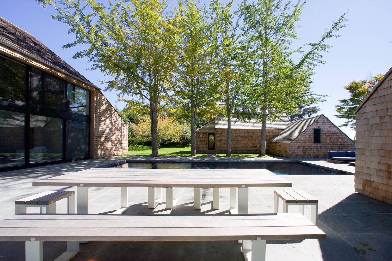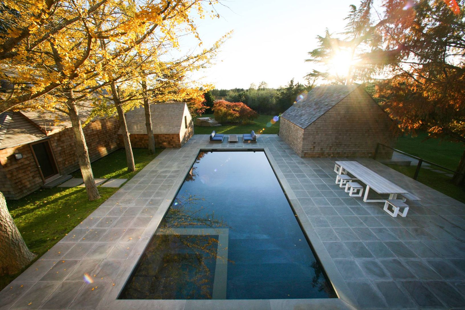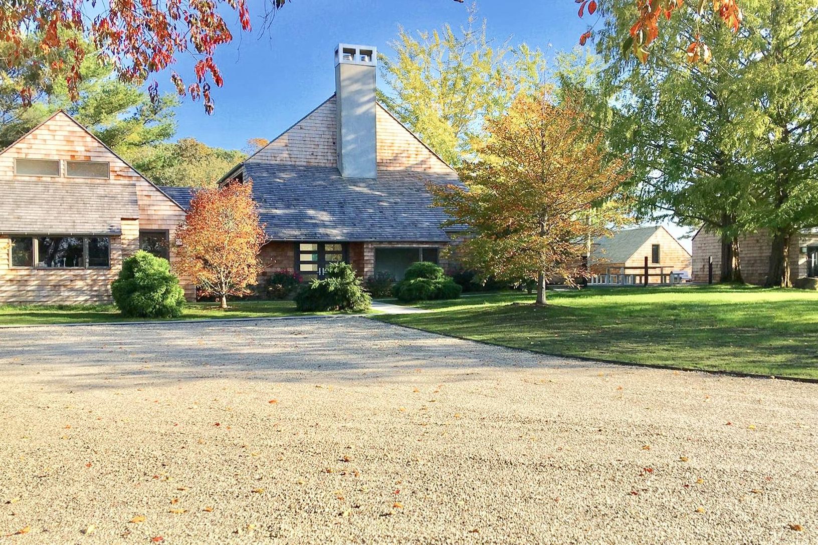 This is a rare opportunity to own the renovated and restored former home of renowned architect, Norman Jaffe, situated on an exceptionally stunning private 1.1-acre, flag lot on Lumber Lane in Bridgehampton. Innovative for his use of natural materials and passive solar forms of design, and urban design, the aesthetic remains true to Norman Jaffe's famed rustic modern beach house. The main house features wood plank walls and ceilings and flame-