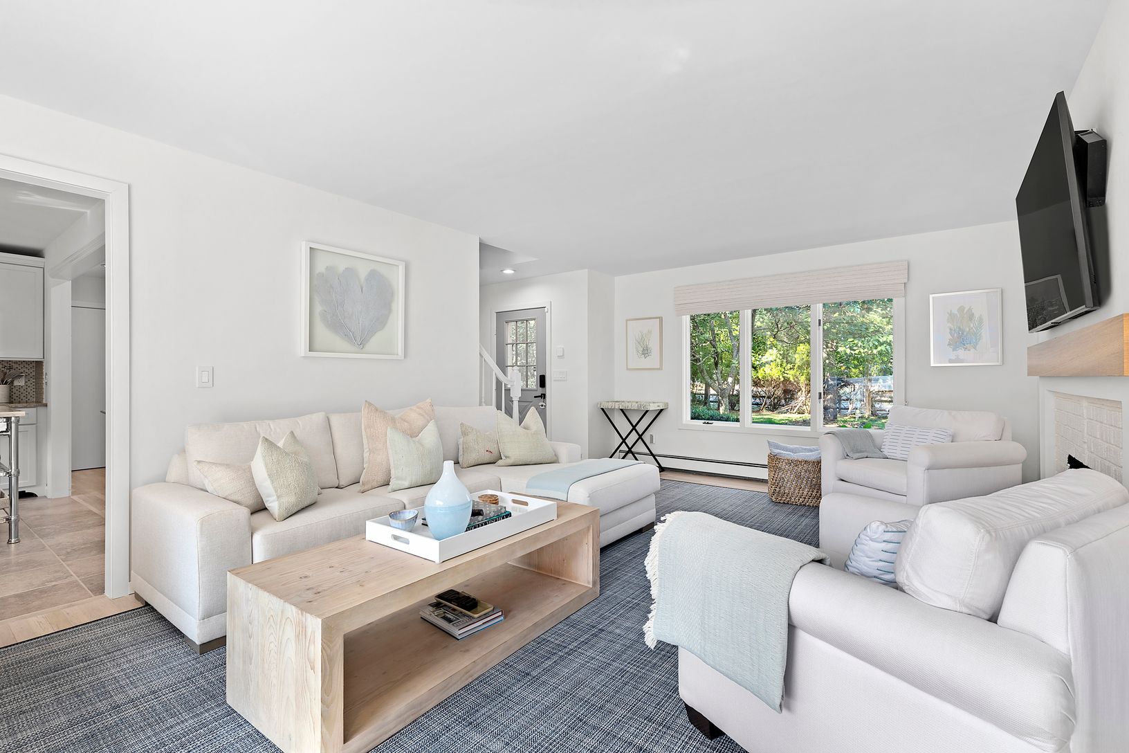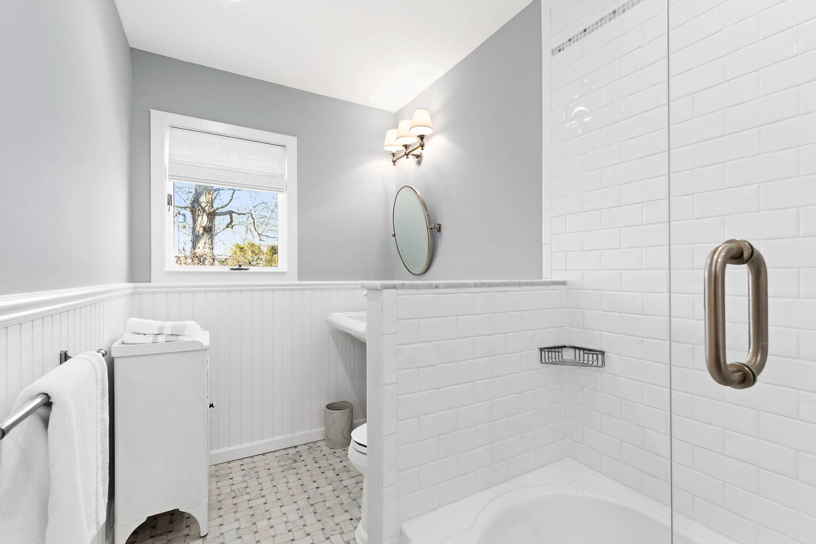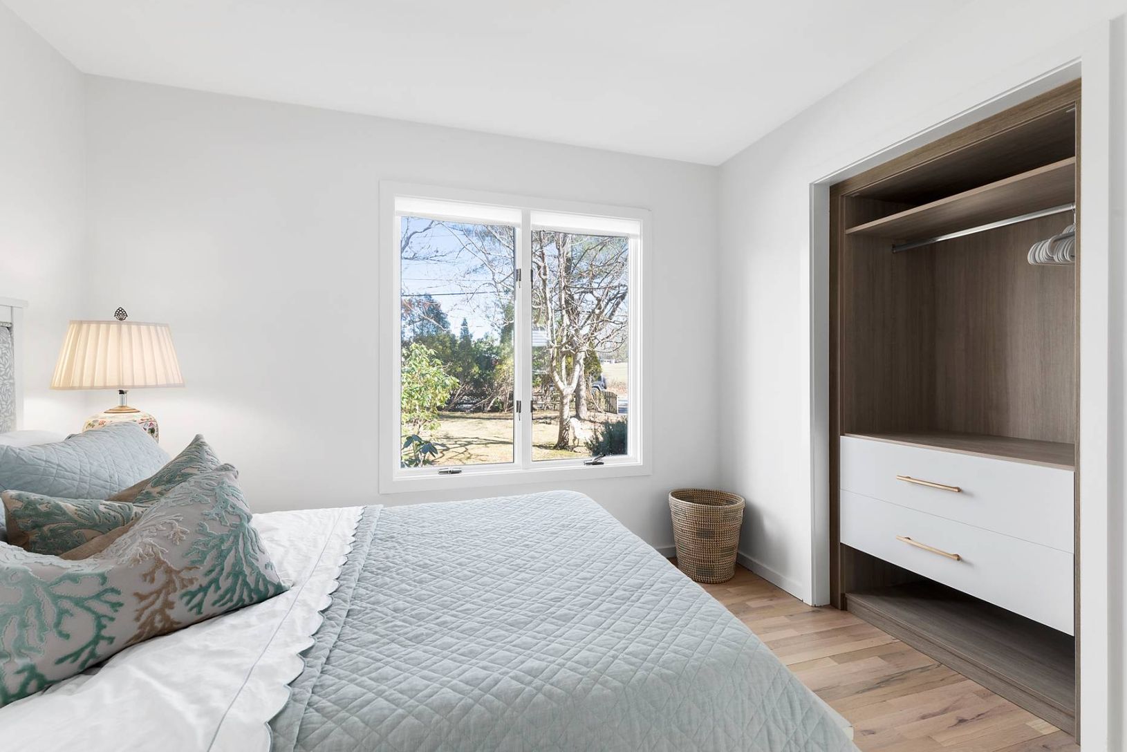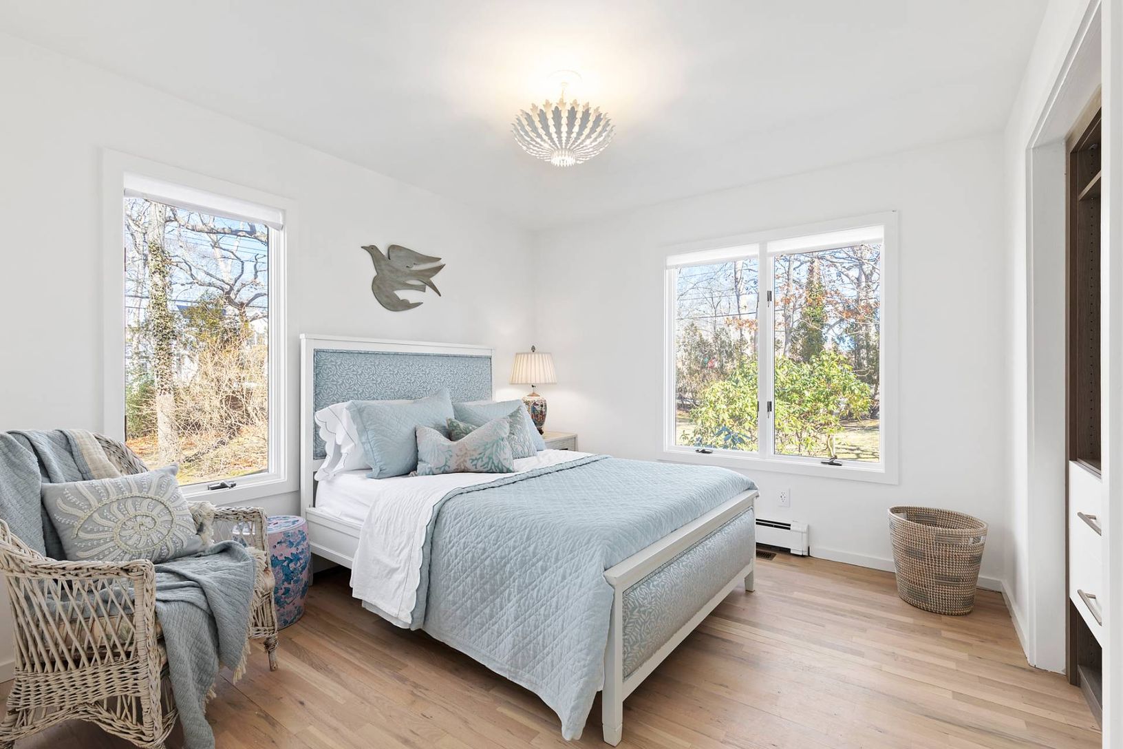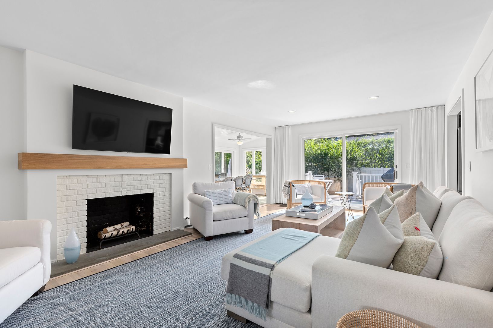 Freshly updated and newly decorated beach house in Southampton Shores has private bay beach access and community tennis courts in addition to a private heated pool with a spacious stone deck. Inside, this airy retreat offers hardwood floors throughout and includes three bedrooms with custom closet systems, two full baths, an open kitchen, large living room with fireplace and flat screen TV, and a dining porch with vaulted ceiling. Everything i