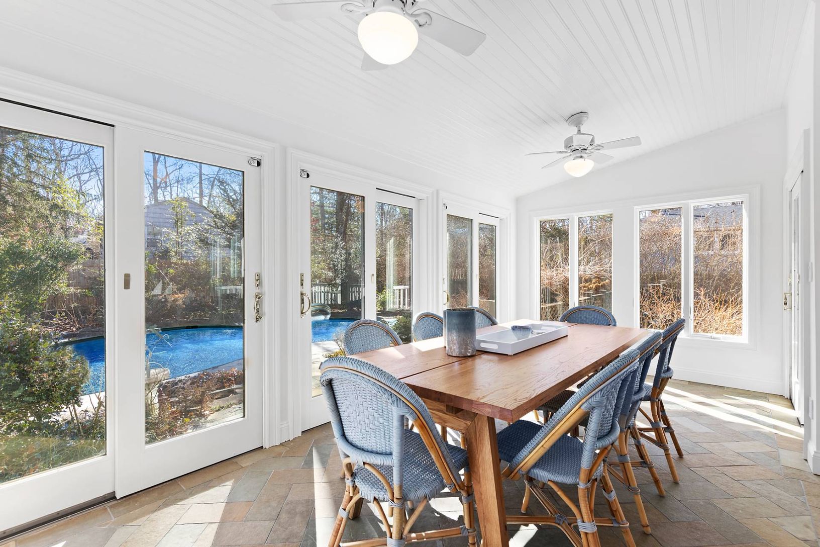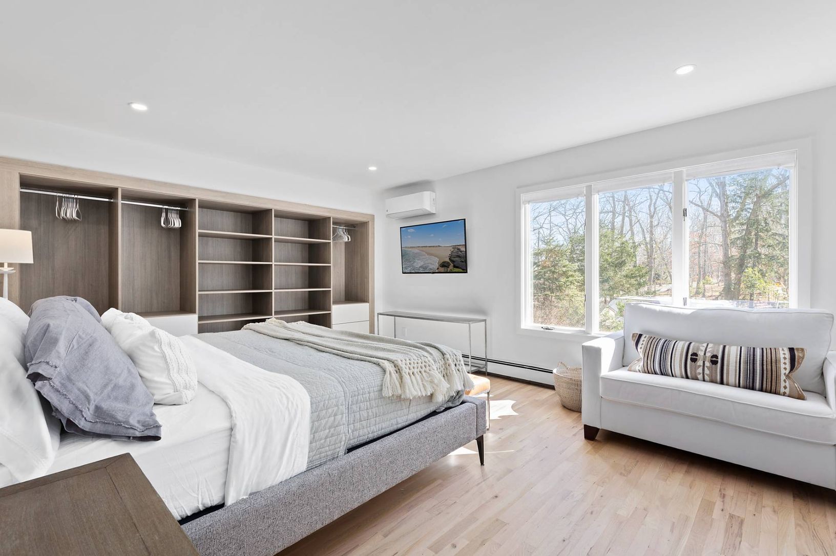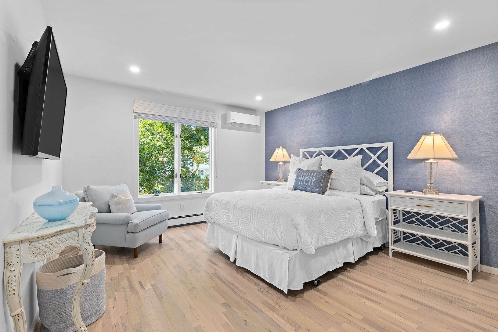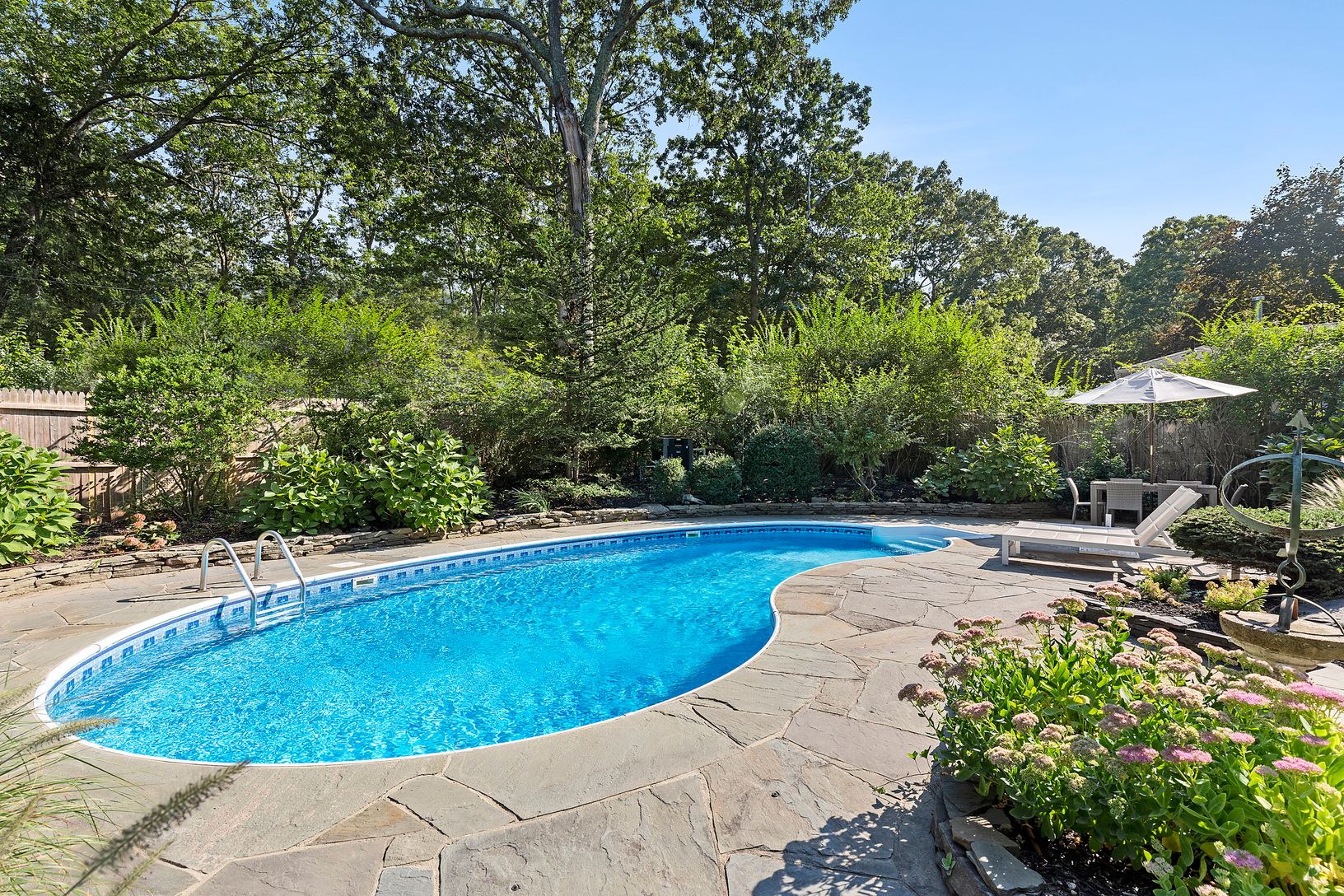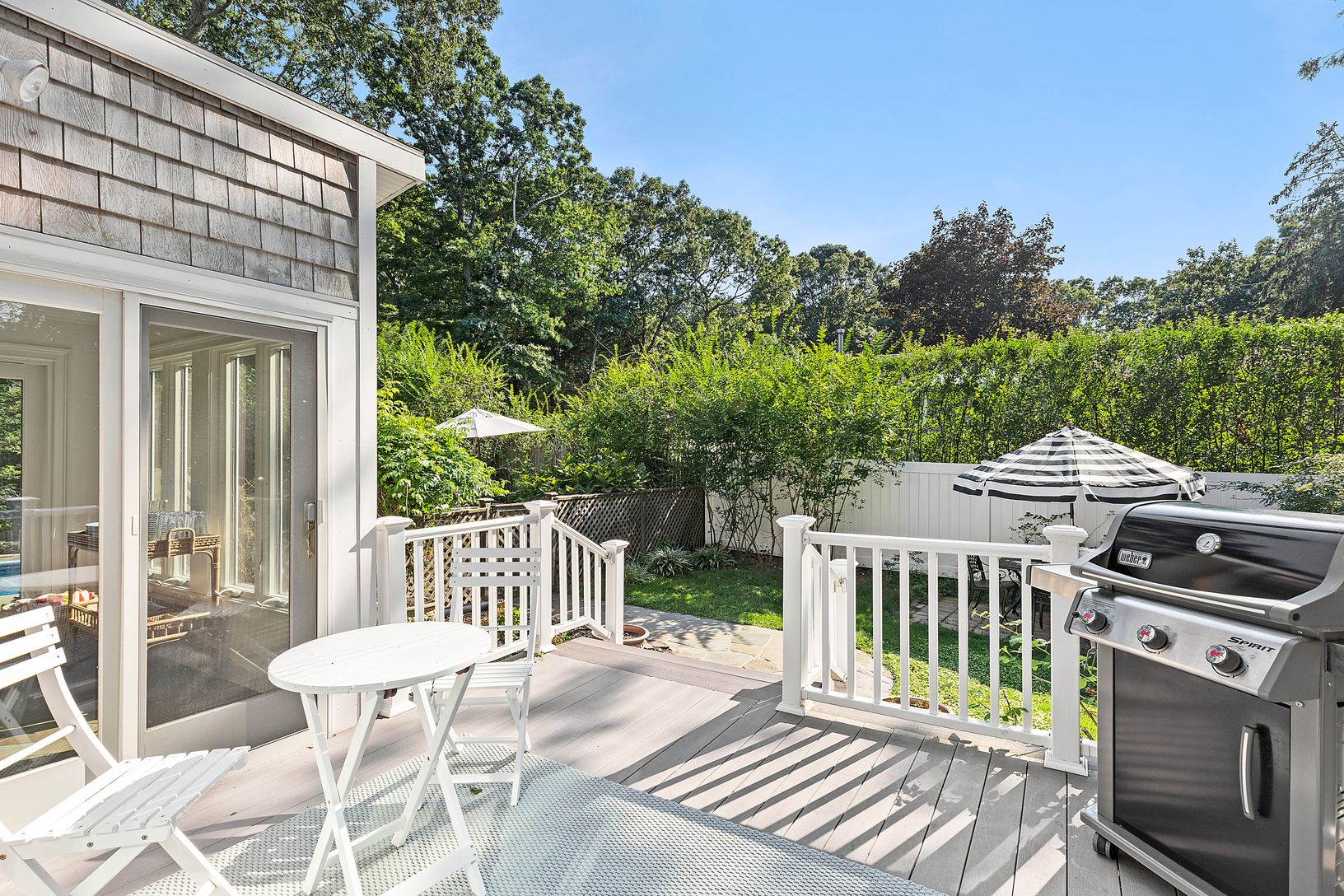 Freshly updated and newly decorated beach house in Southampton Shores has private bay beach access and community tennis courts in addition to a private heated pool with a spacious stone deck. Inside, this airy retreat offers hardwood floors throughout and includes three bedrooms with custom closet systems, two full baths, an open kitchen, large living room with fireplace and flat screen TV, and a dining porch with vaulted ceiling. Everything i