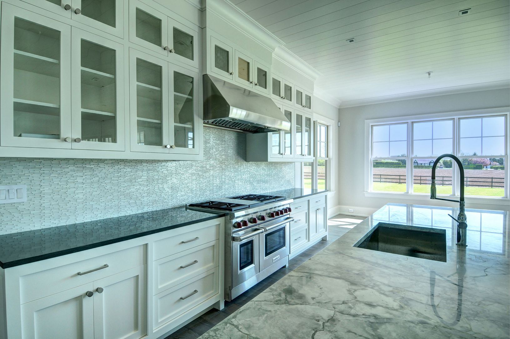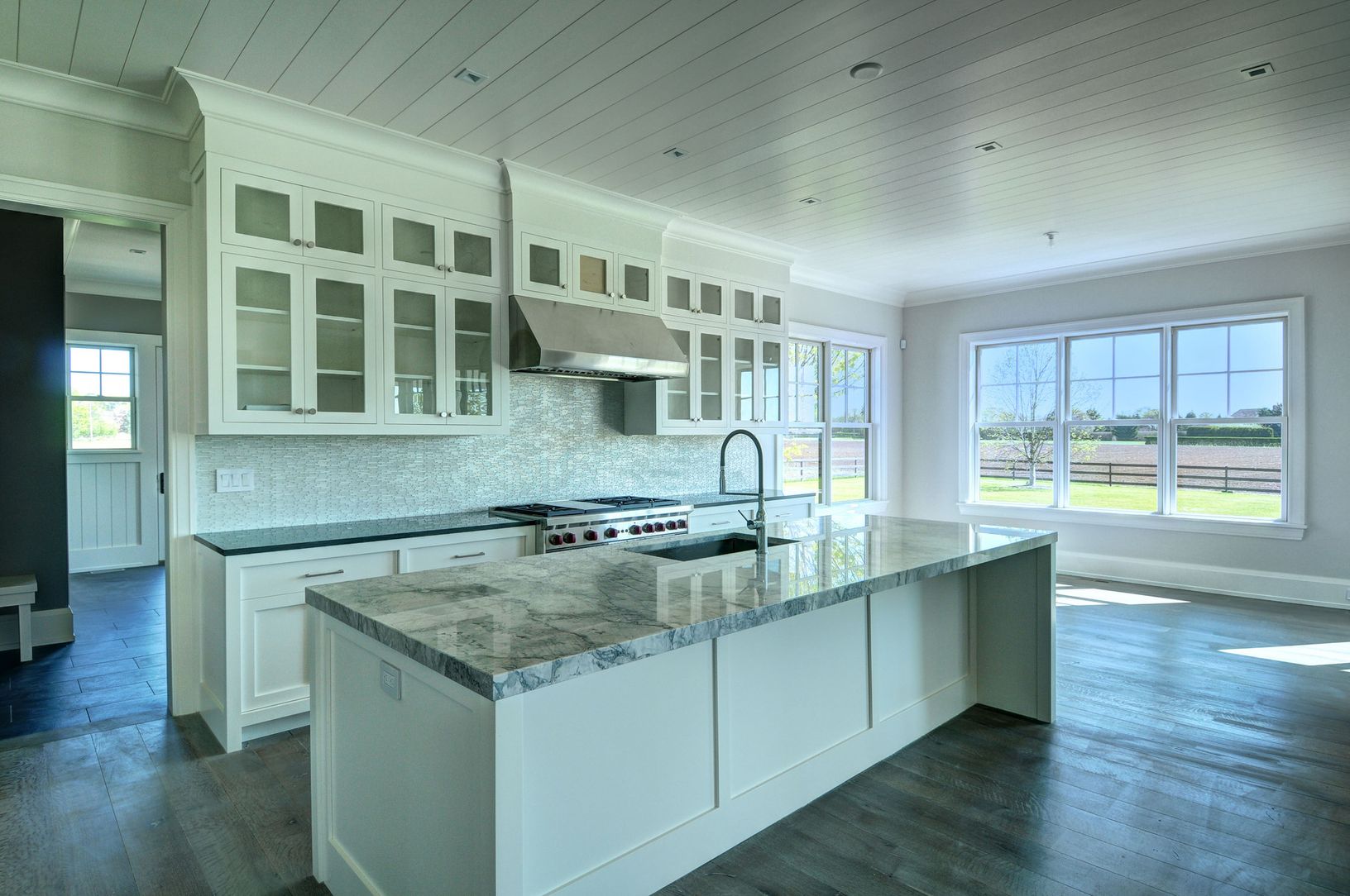 Located just outside Southampton Village overlooking 50+/- acres of farm field reserve, this 5,400+/- sq. ft. new construction home (plus finished lower level), by highly regarded Cardel Development on 1.6 acres has six bedrooms, all en suite, seven full and two half baths. The new home has sweeping vistas of fields and sky from its 750+/- sq. ft. of covered porches and light-filled interiors. A grand entry foyer sets the tone. Ideal for enter