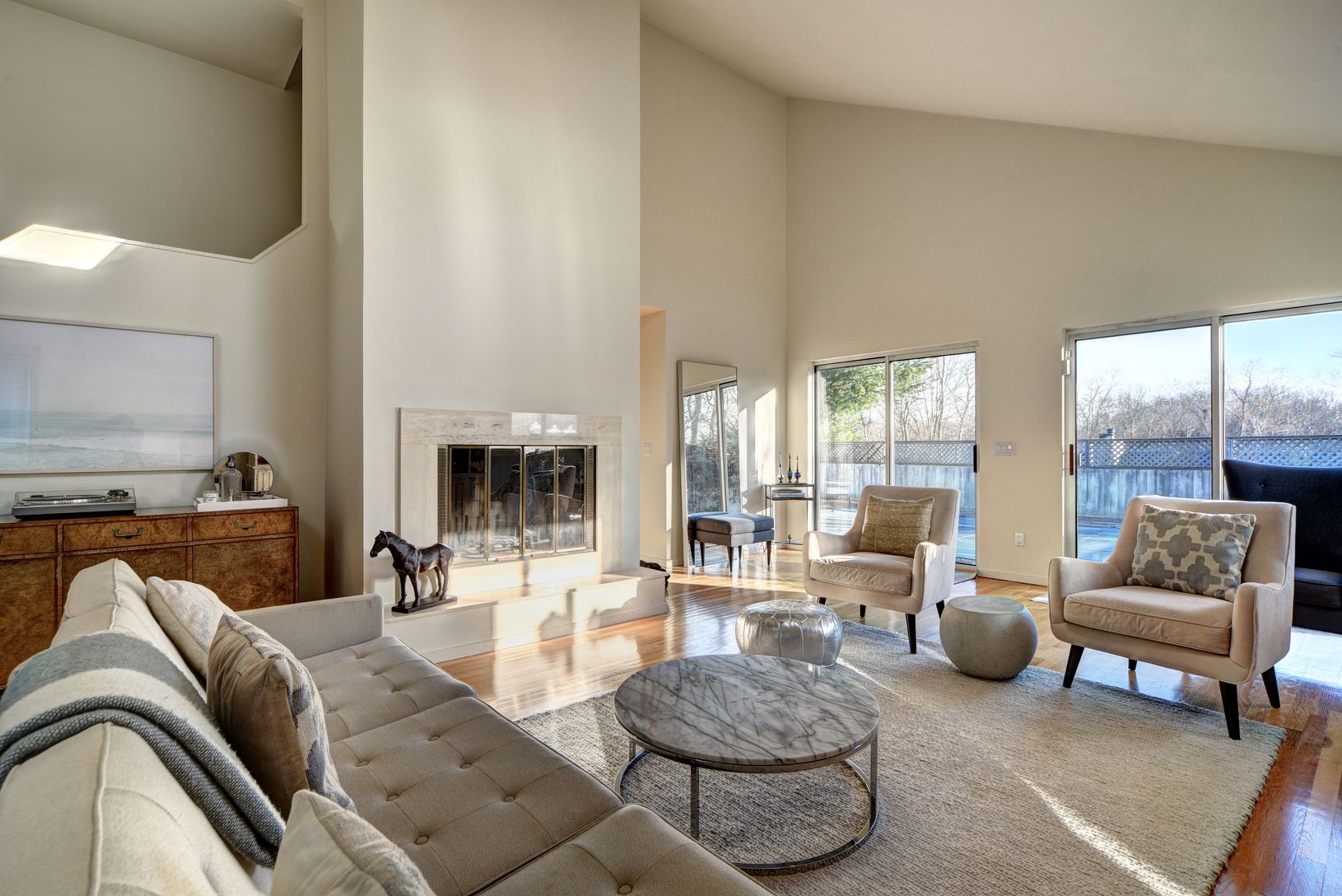 Located in the center of the Hamptons, his newly renovated three bedroom, three bath Bridgehampton contemporary beach house is located in Bridgehampton farm and wine country, and is just minutes to Main Street, ocean beaches, Sag Harbor Village and equidistant to both East Hampton and Southampton. Featuring an open floor plan with cathedral ceilings and a renovated kitchen, the living and dining area is flooded with light on three sides and op