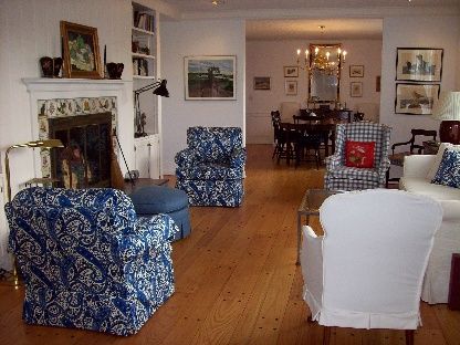 A lovely open property with established trees. Library, livingroom, dining room, sun porch, 4 bedrooms, two fireplaces, pool. All situated on one acre minutes to ocean.