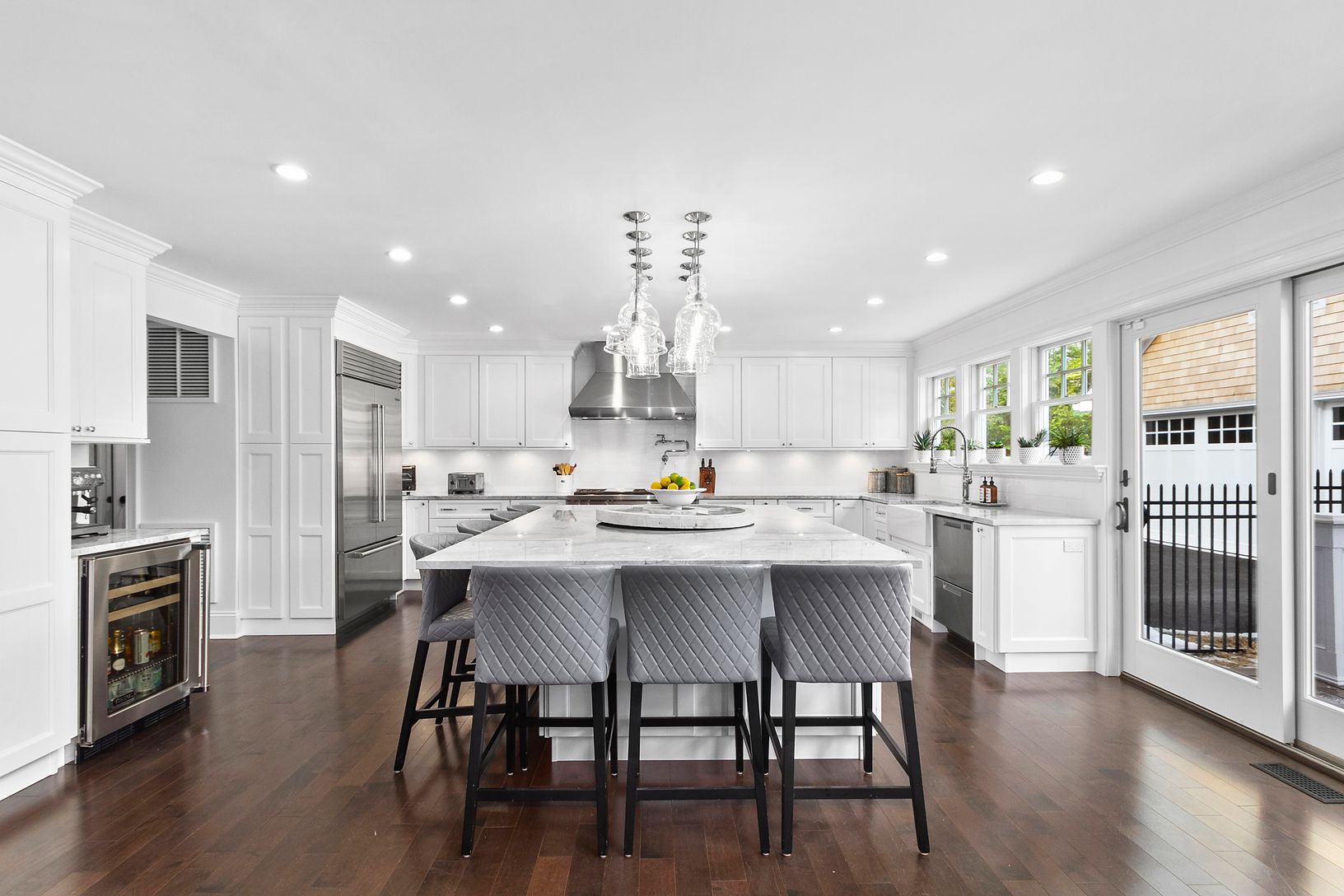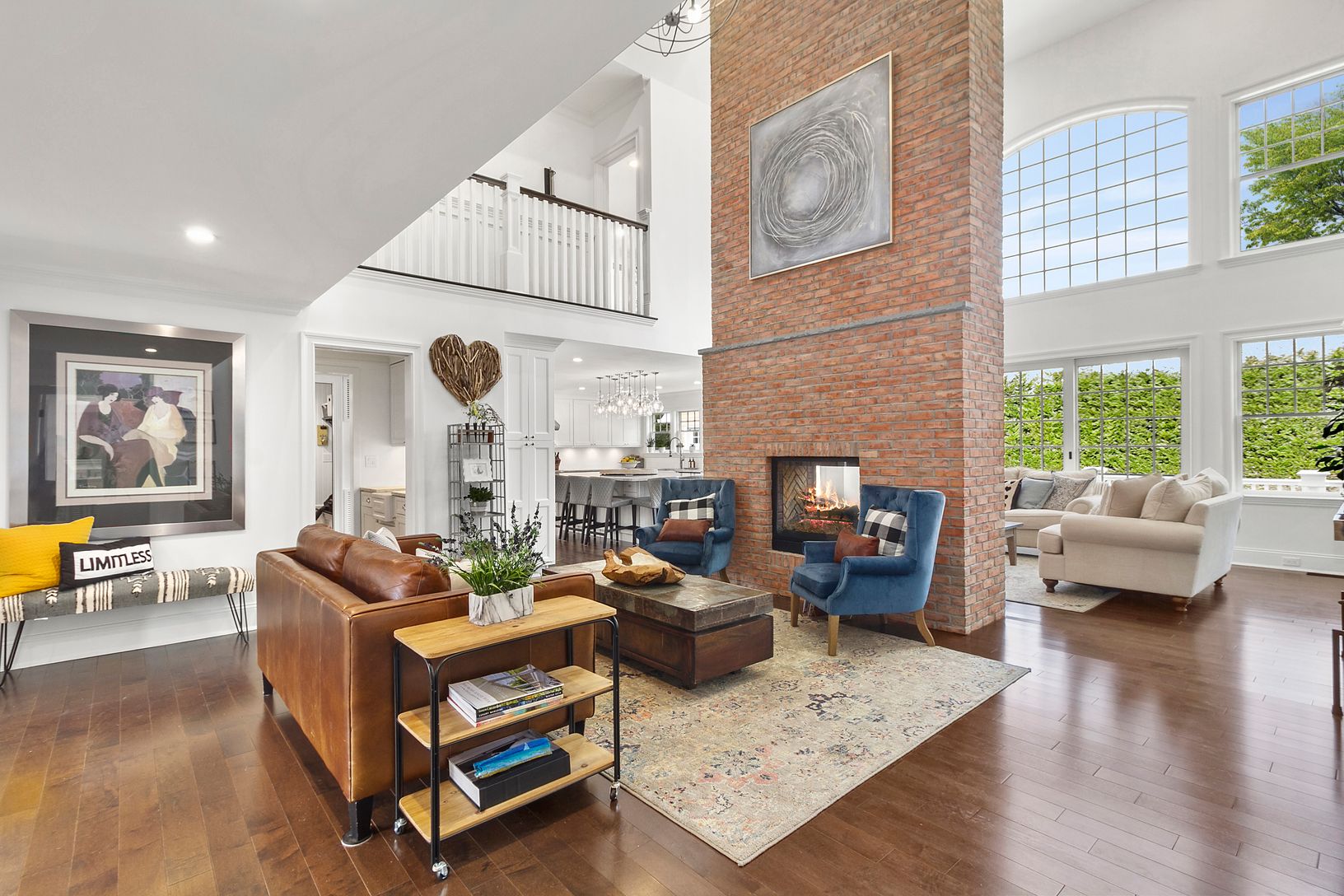 Masterfully renovated in 2019 by Architect James Bouler, this extraordinary 4000 sqft, 4BD 4BA postmodern home is a pinnacle of thoughtful design and stellar craftsmanship. Through the covered front porch, find a generous entry foyer flanked by a formal dining room and private office with full bath. Straight ahead, the great room is divided by a double height, two-sided brick fireplace wall, creating elegantly partitioned living areas overlook