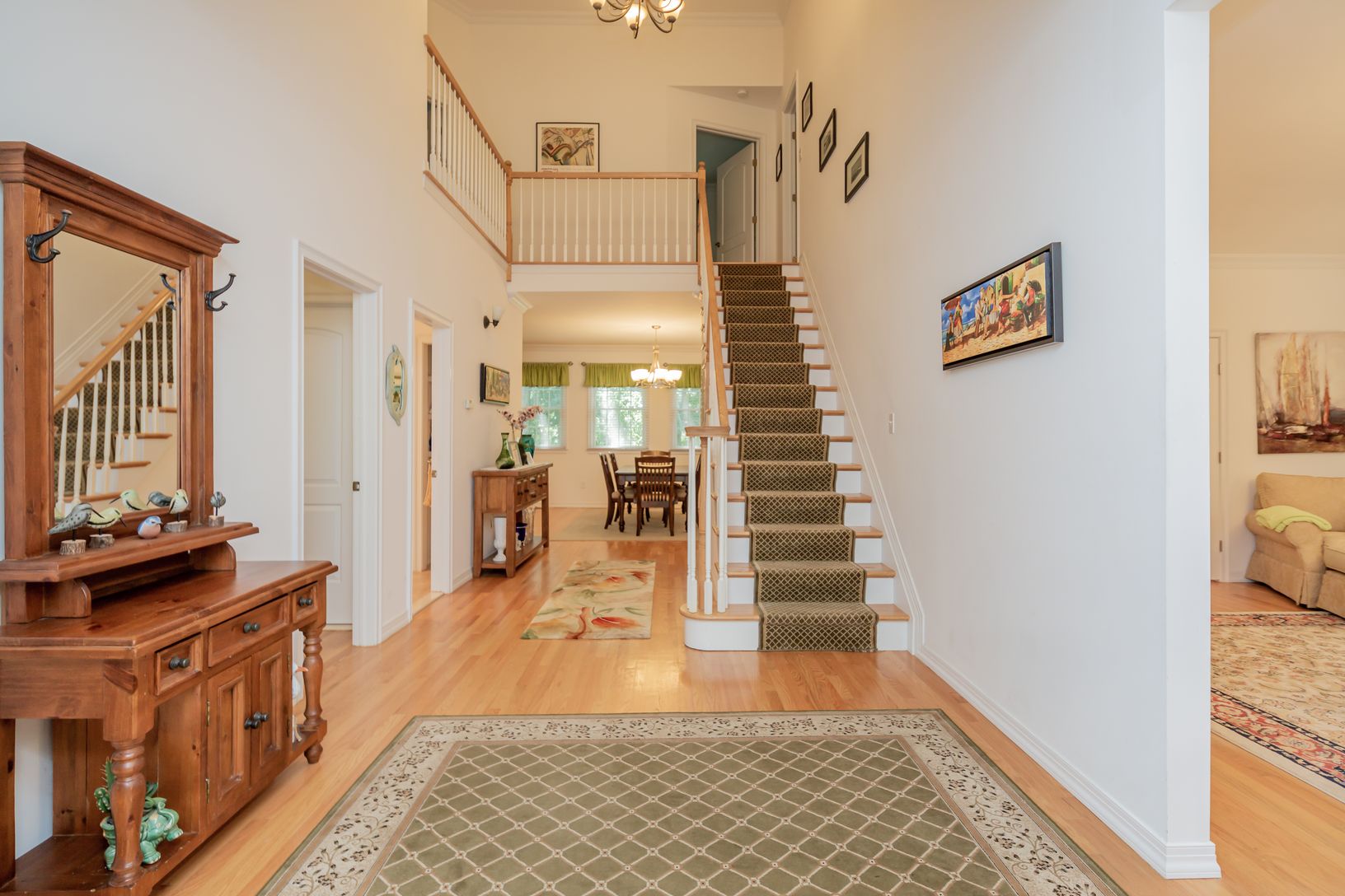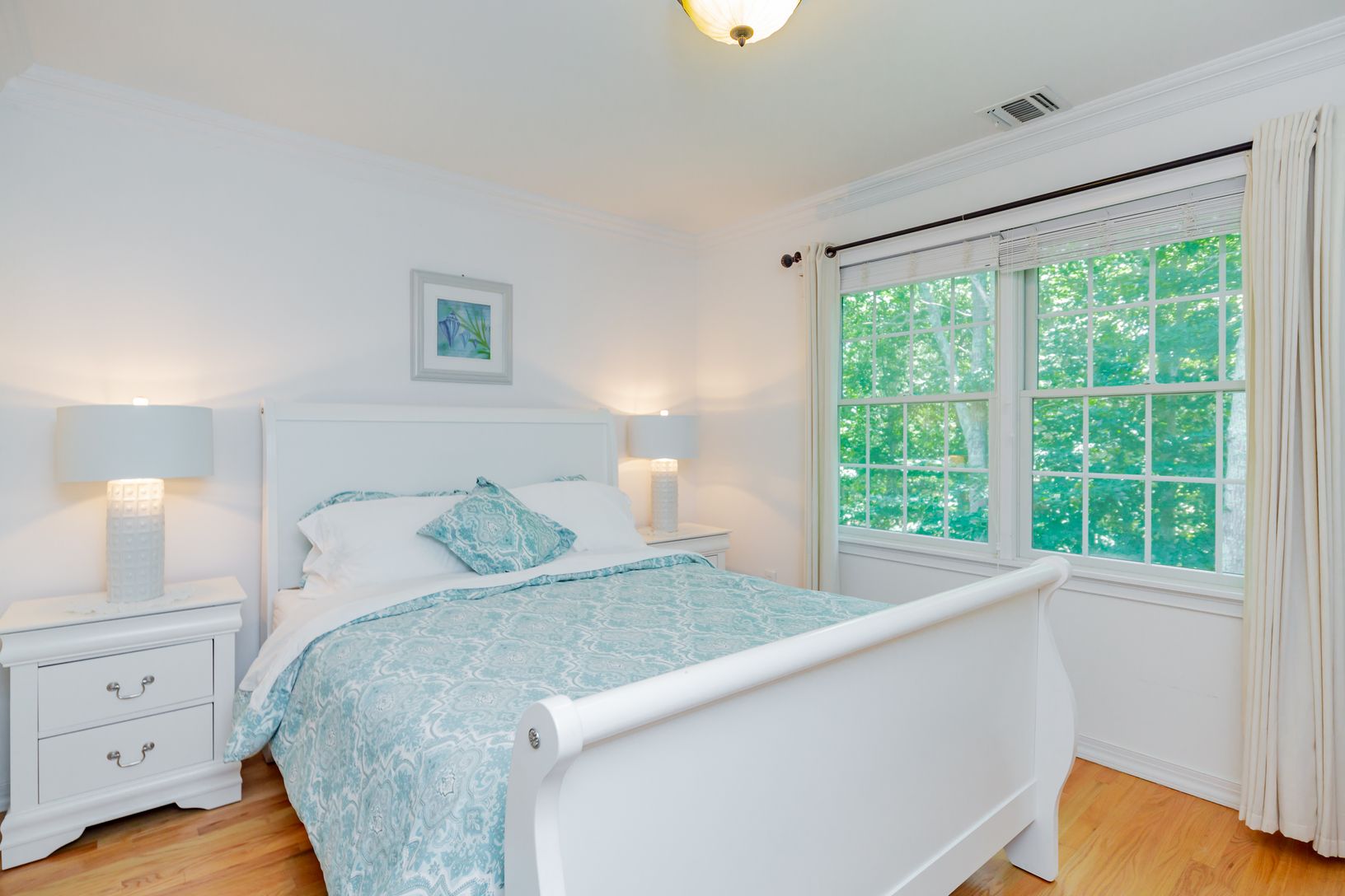 This spacious 3000+/- traditional home with 4 bedrooms and 3 baths is now available for year round. The gracious center hall entry is flanked by a large formal dining room and a bright living room with glass doors inviting you into a comfortable family room. There's an open eat-in kitchen across from the family room which has glass sliders to a lovely deck for outdoor dining. Also on the main level is a full bat