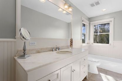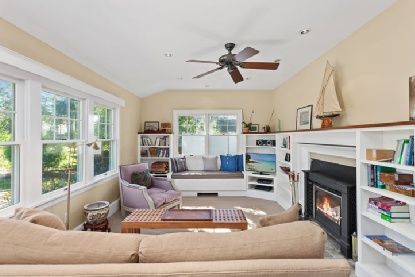 Renovated in 2004 this charming traditional is only steps from the water... located on a beautiful street in the quaint town of Remsenburg. Main level offering a spacious living room with custom wood working built-ins, light filled dining area, granite kitchen with top of the line appliances, powder room, laundry room and den with wood burning stove. Master suite upstairs with walk ins and office plus two guest bedrooms and a bath. Complete