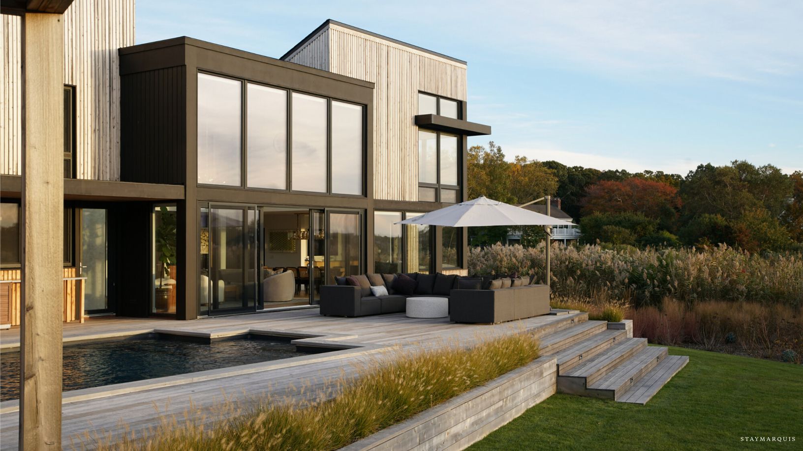 Have an amazing summer in this ultra private spacious modern waterfront escape!! This custom home sits on an amazing lot with huge deck and pool facing west to take in the sun and enjoy incredible sunsets every evening. There are generous spaces inside and out to relax and experience all the Hamptons has to offer. Wide open living spaces flow from the oversized professional kitchen, soaring living room with oversized windows, western facing l