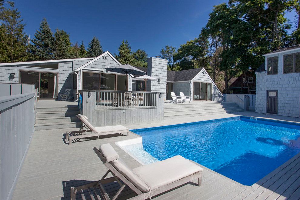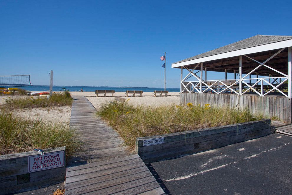 Rare opportunity to enjoy this totally renovated 3 bedroom 2 bath retreat with a heated pool extensive outdoor entertaining space in Southampton Shores, a private beach community. Enjoy western sunsets on your beach after a game of tennis or a boat ride. Southampton Shores has it's own private Marina, tennis courts and private sandy peconic bay beach. There is a two story pool house with a first floor recreation area and a second floor lounge