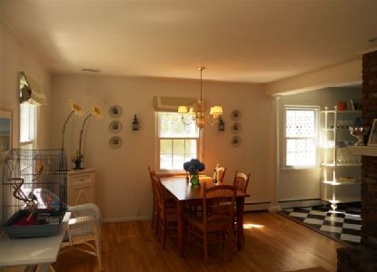 Just 1.5 miles from the Village center and convenient to ocean beaches, this four-bedroom, two-full bath, cape-style cottage provides the perfect August getaway. Bright and immaculate, the property includes central air conditioning, full kitchen, open dining with fireplace and sitting area, living room, outdoor brick patio, garage, and privacy hedges and plantings on a generous half-acre, everything just picture-perfect.