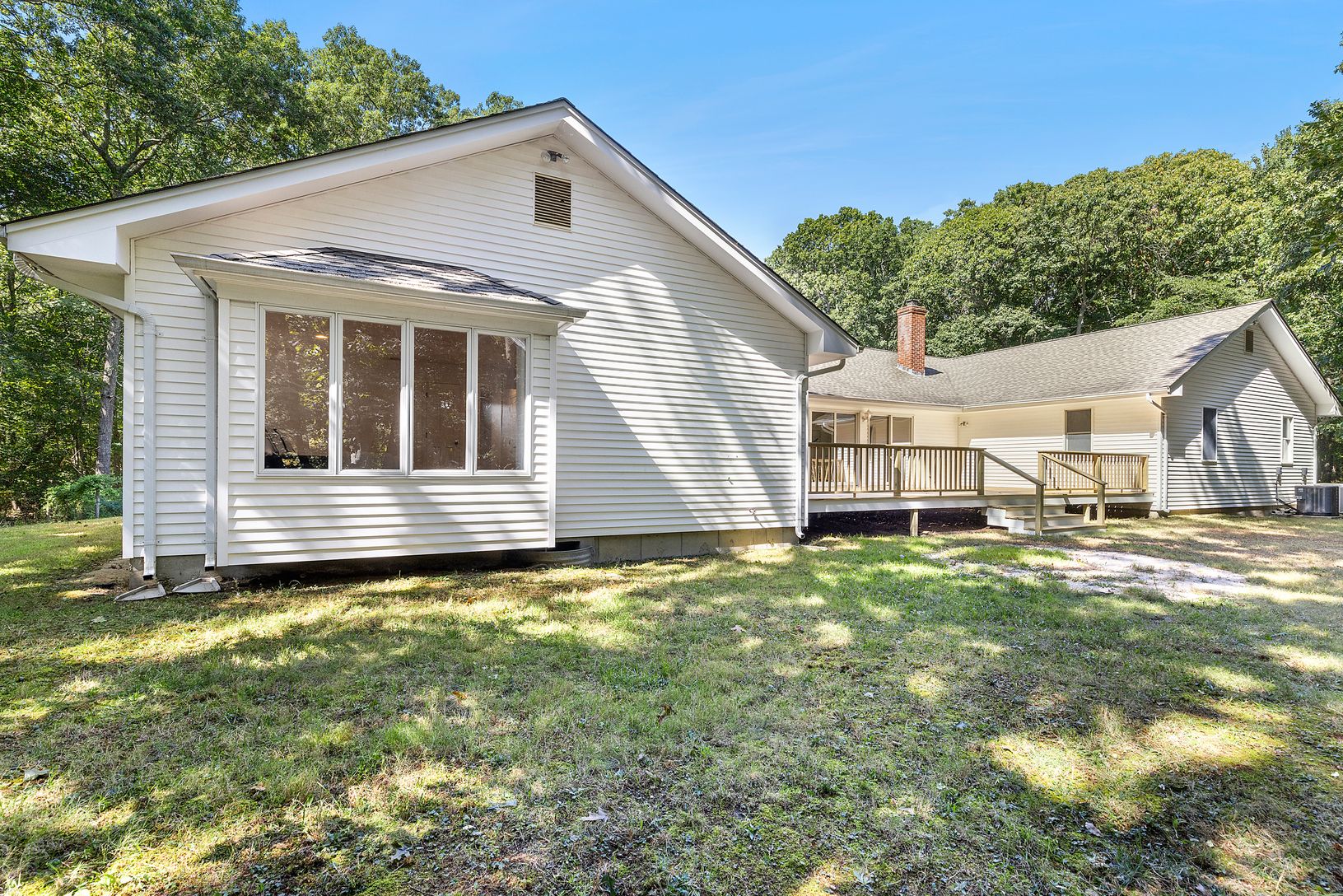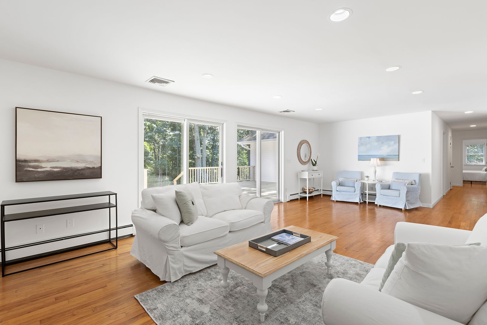 Location, Location, Location! Sprawling mint one level home set back from the road on 2.39 acres. Close to a gorgeous sandy sound beach, and small restaurant for waterside dining. The freshly painted interior and hard wood floors accentuate the spaciousness of this extraordinary ranch home. Huge great room has double sliders that open to the large back deck for entertaining, or quiet reflection with nature. Beautiful sunlit living room, and di