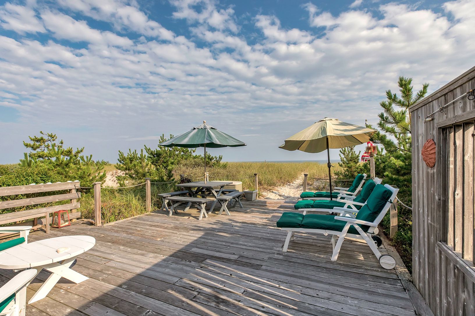 OCEANFRONT BEACH HOUSE WITH BEAUTIFUL OCEAN AND BAY VIEWS/BREEZES. WRAP AROUND DECK. 4 BEDROOM 3 BATH WITH OPEN FLOOR PLAN. BAY ACCESS ACROSS THE STREET.