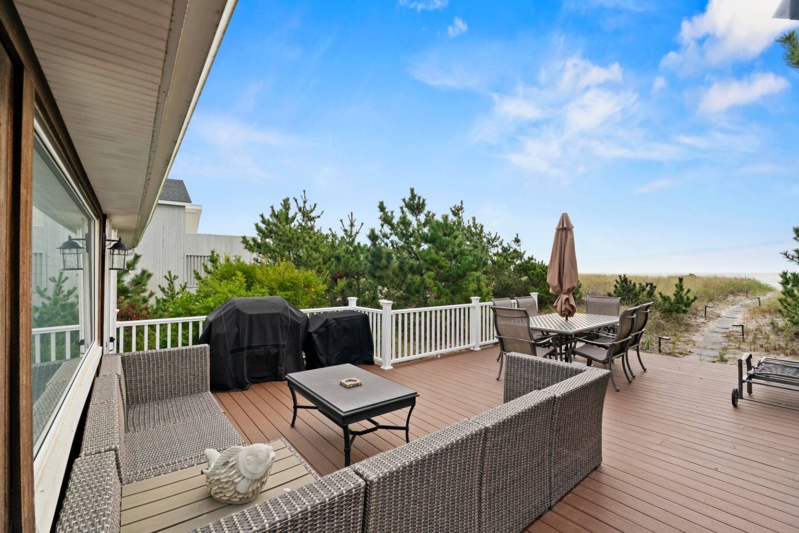 Experience the essence of Hamptons Oceanfront living in this rare and quintessential summer getaway, set on a shy half acre with 4 bedrooms and 3 baths. This stunning Oceanfront retreat captures breathtaking easterly sunrises, panoramic Ocean views, and incredible Bay vistas across pristine white-sand beaches. Enjoy exceptional outdoor living spaces with a wraparound deck, nestled perfectly and perched high above the dunes, offering commanding