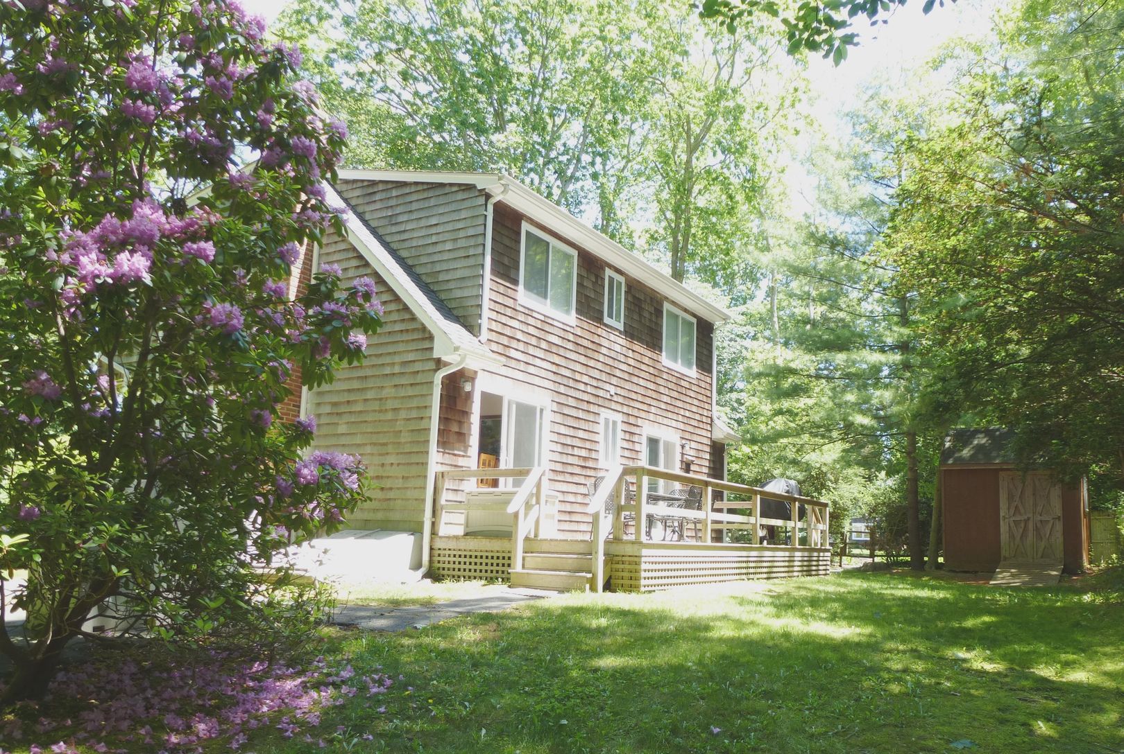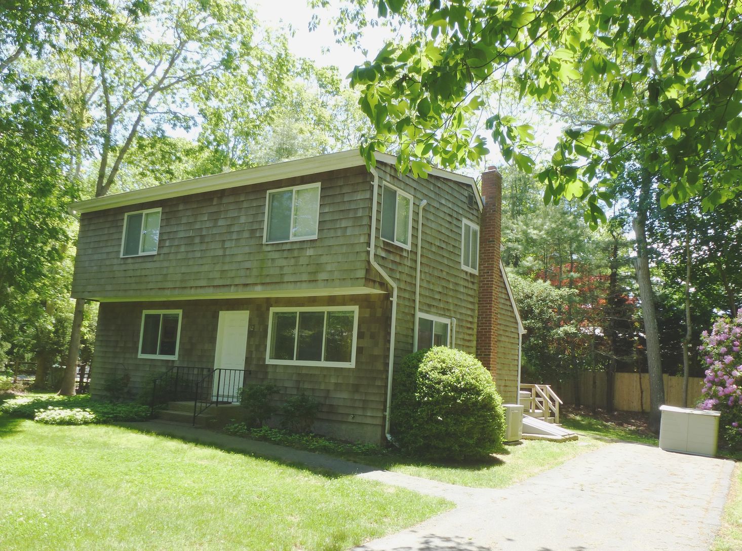 Great flag lot at 62 Cove Hollow Rd that is in close proximity to the village of East Hampton. Here you will find a 4 bedroom, 2 bath home on a half acre that sits well off the road and is surrounded by multi million dollar homes. This house offers tons of potential, or is perfect as is. There is a master bedroom on the first level, an eat in kitchen, living and dining areas, and there is a full basement. Upstairs features 3 bedrooms, a den an