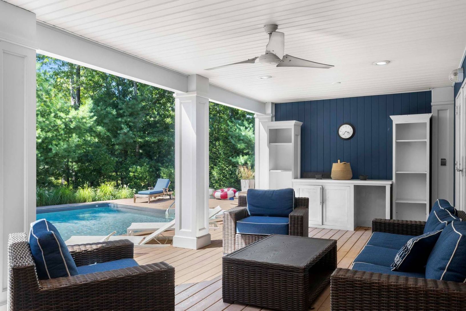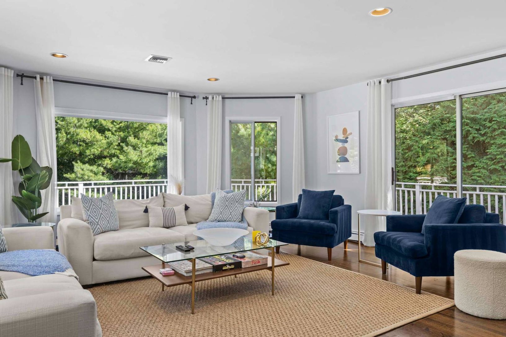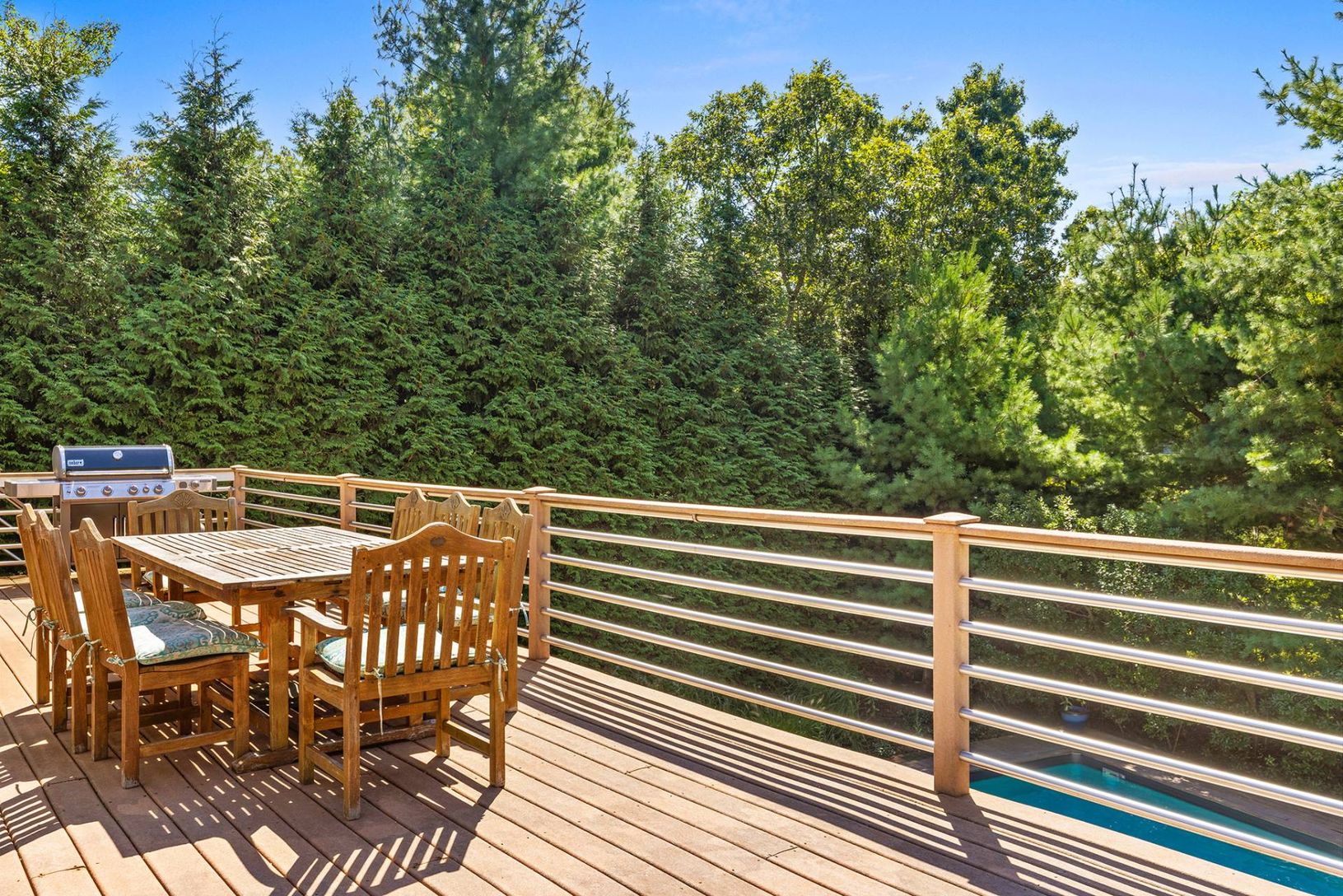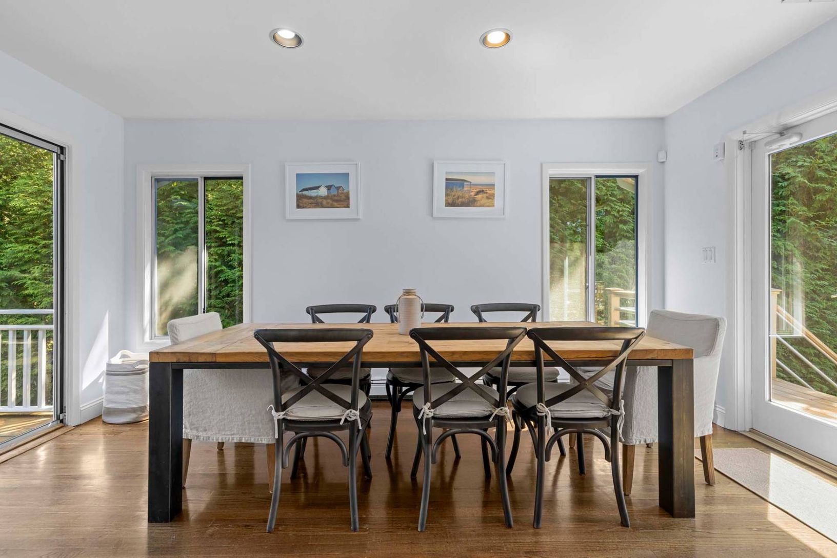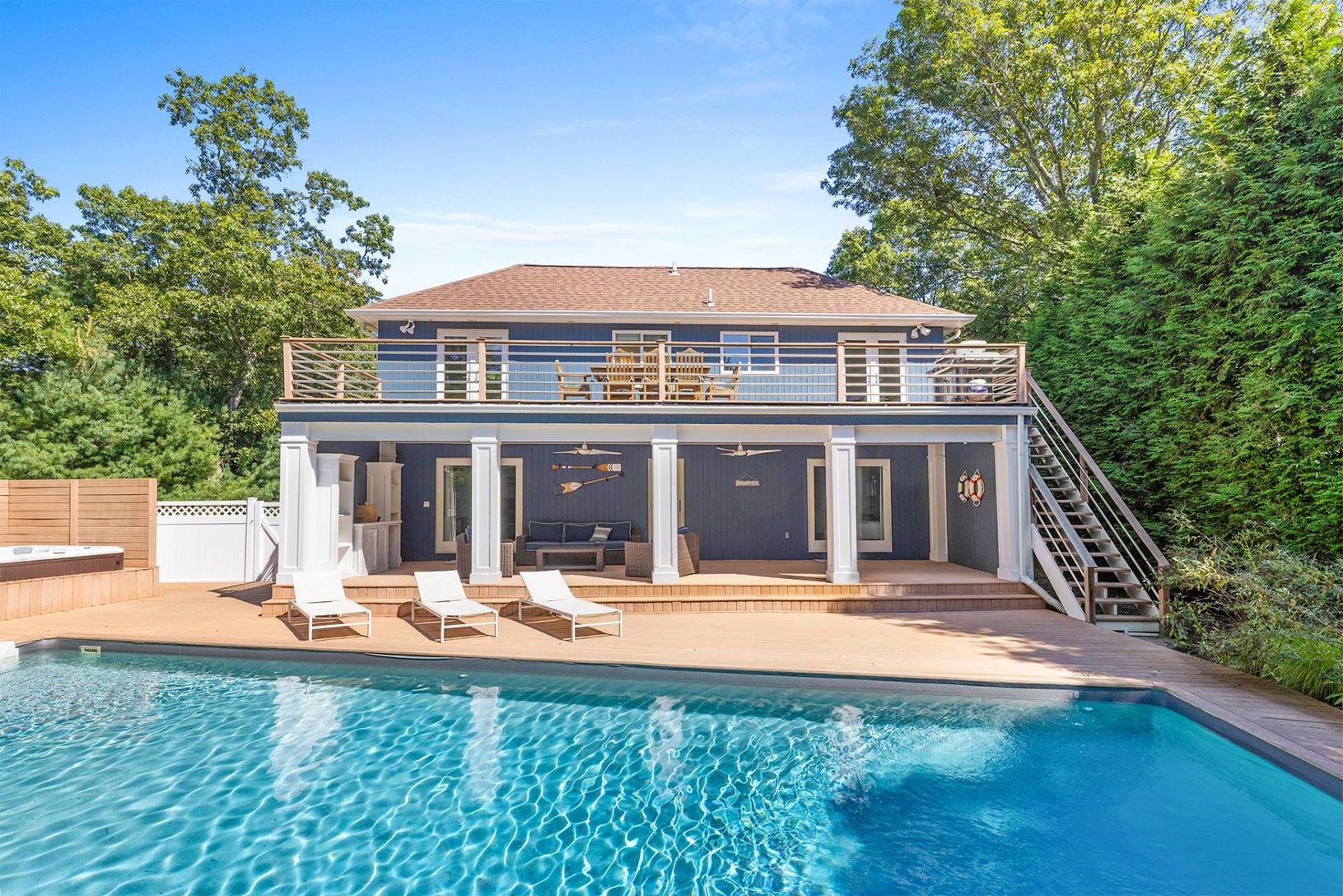 Perfectly positioned between Sag Harbor Village and East Hampton Village, this turnkey, sun-drenched retreat offers seamless indoor-outdoor living with timeless style and comfort. Set on a quiet, tree-lined street surrounded by multi-million dollar homes, the property is a hidden gem offering both privacy and proximity to the best of the Hamptons. A long, stone driveway introduces the home, framed by mature landscaping and ample parking. Desig