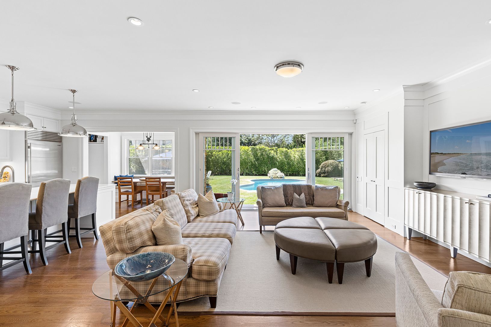Perfectly located on one of the most desirable village streets in East Hampton, 65 Gould is a meticulously renovated traditional, spanning over 3,000 sq feet in total and built for elevated living. Designed and built for the current owners, each detail was thoughtfully considered. This exquisitely designed 4 bedroom, 4.5 bath home offers a sophisticated living space for relaxing and entertaining friends and family. The main level of this resid
