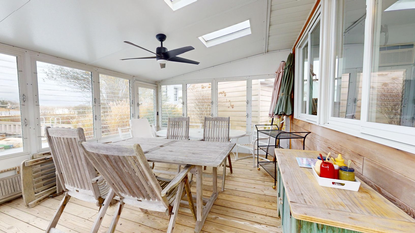 Waterfront cottage located in the highly desirable Hampton Point community. This charming cottage features 3 bedrooms and 2 full baths, offering comfortable living with an eat-in kitchen, dedicated dining room, and a spacious family room with a cozy fireplace. Enjoy serene water views year-round from the bright sunroom overlooking the bay. Step outside to your private bulkhead, with a boat slip available—ideal for boaters and water lovers. A