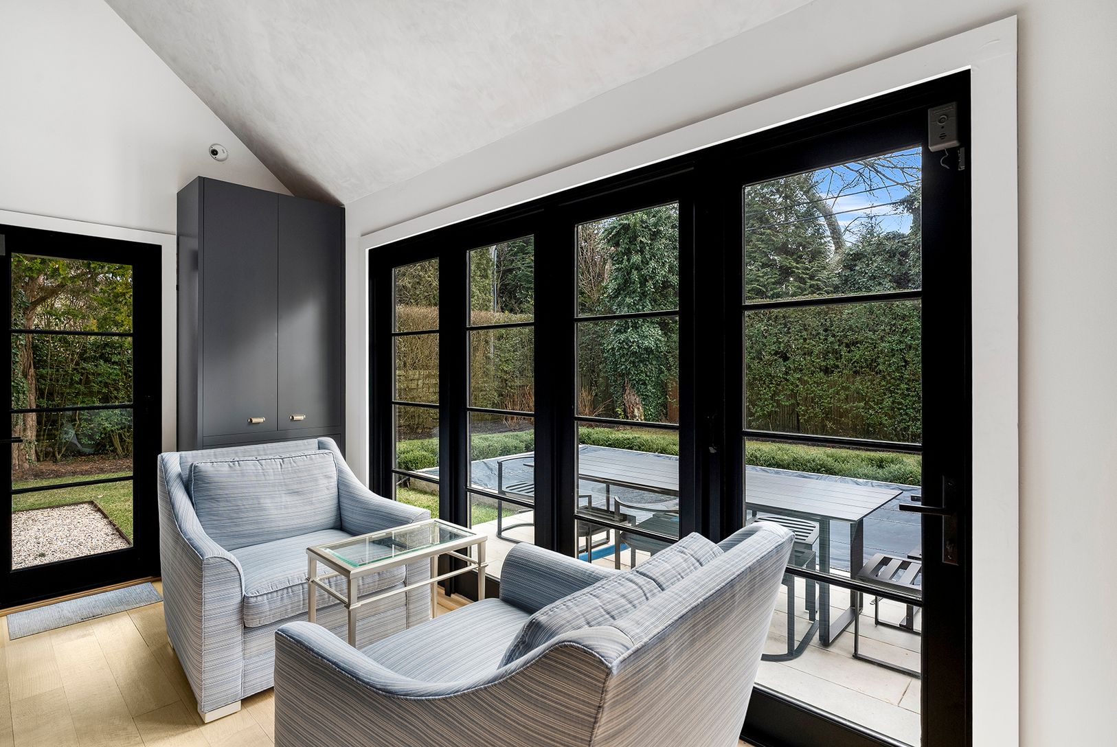 New 4-bedroom Summer rental with pool in East Hampton Village on Mill Hill Lane, only moments from Main Ocean Beach. This gorgeous rental offers 2,770+/- square feet of pure elegance on one of the most coveted tree-lined lanes right off Main Street and its incredible amenities, shopping, dining, the movie theater and more. This home exudes superior style and design, both inside and out. The open floor plan features vaulted ceilings with expose
