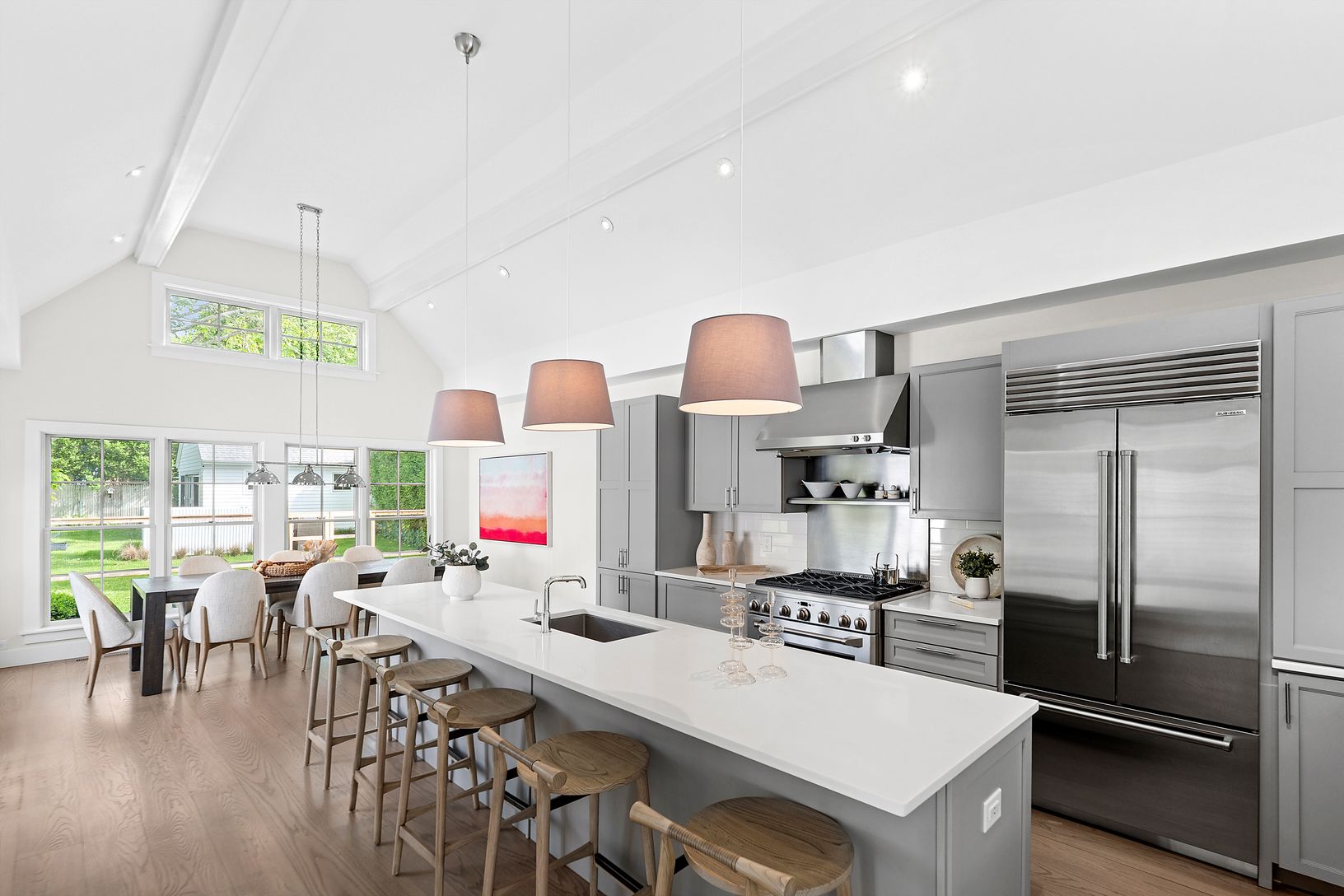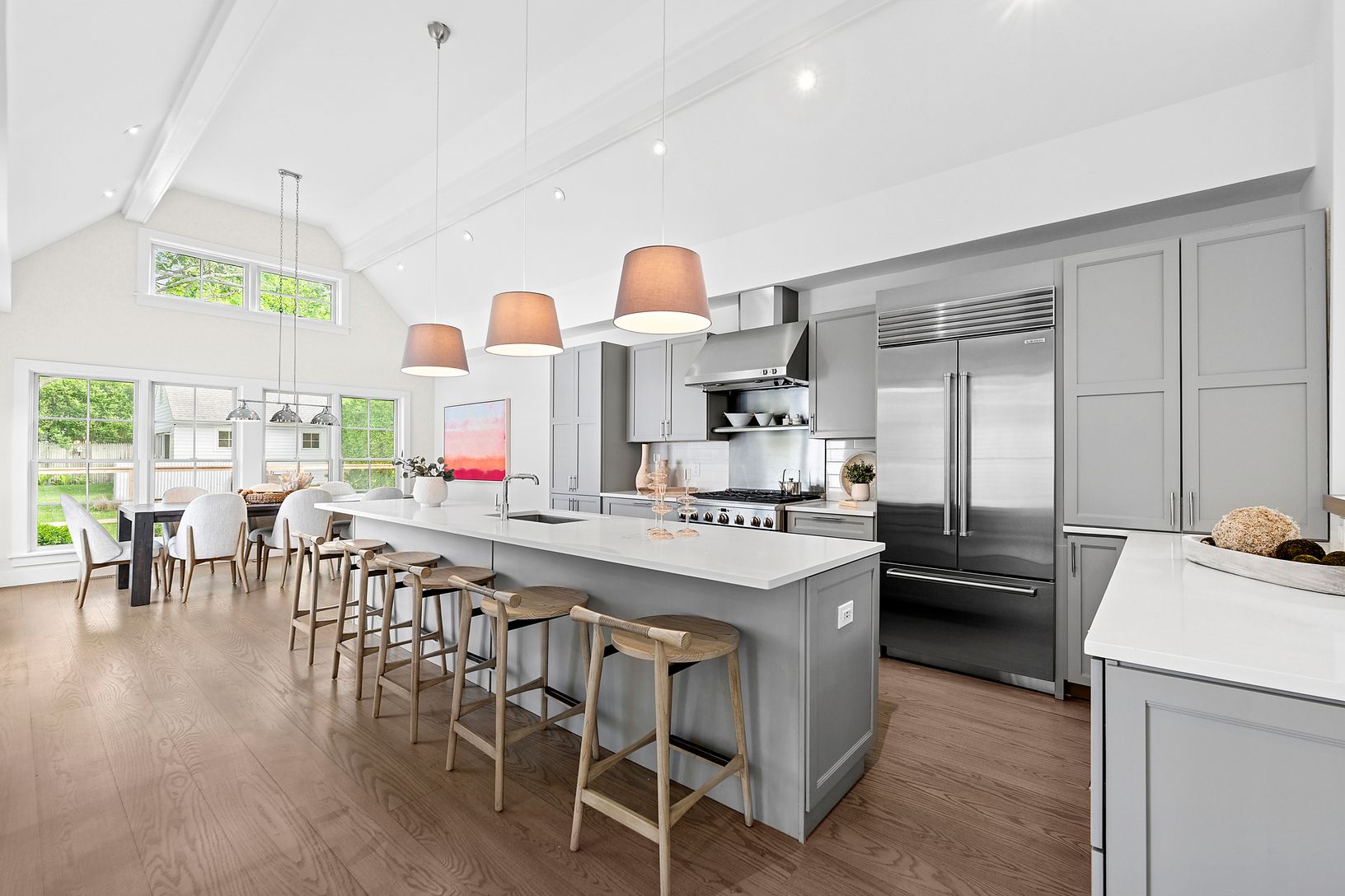 Conveniently located near Amagansett and East Hampton Village amenities, this beautiful one-story home features a gated entry and offers a high level of privacy. The first floor is sure to impress with 3,000 sq. ft. of living space that includes a grand entry foyer featuring dual coat closets, setting the tone for the rest of the home. A cozy office nook provides additional functional space, while the living room, featuring a gas fireplace, of