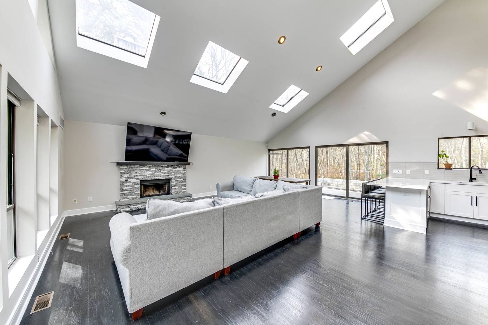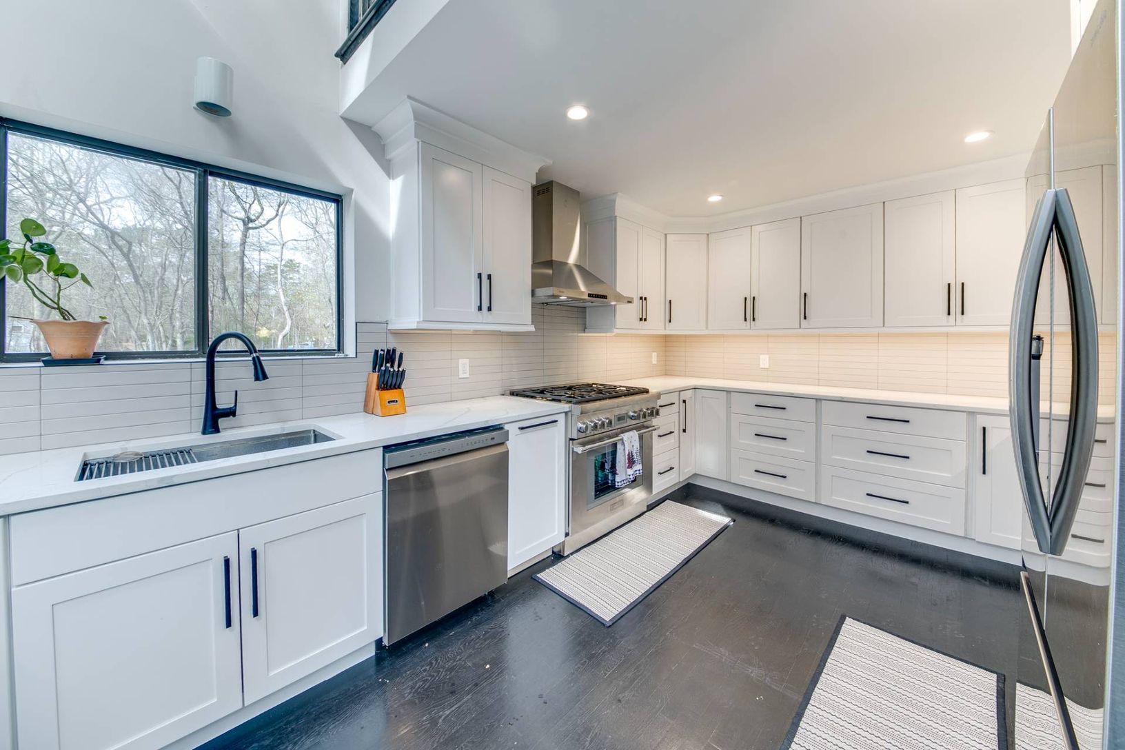 Welcome to 65 Old Country Road, where modern design meets timeless Hamptons living. This fully renovated contemporary home offers four bedrooms, three and a half bathrooms, and spans almost 3000 square feet on a generous 0.64-acre lot. Originally built in 1988, the residence has been completely transformed with high-end finishes and a sleek, open-concept layout. Step inside to discover a bright and airy interior anchored by a white shaker kitc