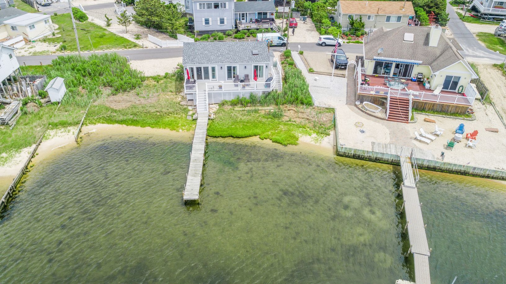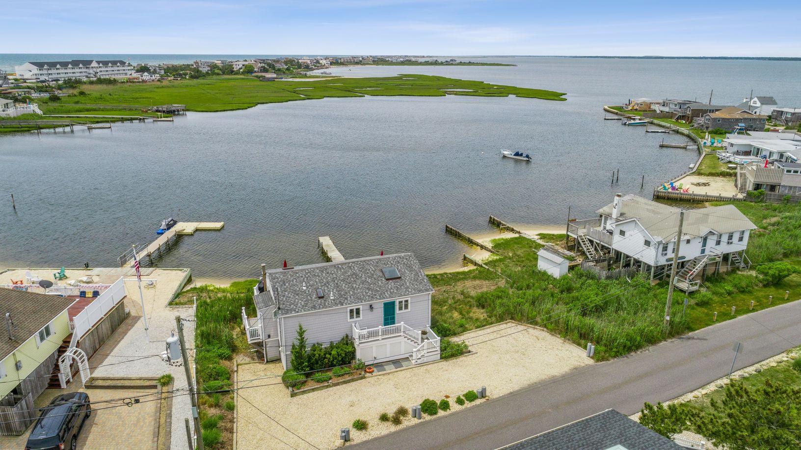 Come and enjoy this perfectly finished beach house with 90 feet of bay frontage in the fabulous neighborhood of Pont Point. Open and airy floor plan that leads out to a spectacular deck affording spectacular nightly sunset views. Stainless and granite kitchen. New Roof, appliances and siding. True primary suite with slider to the deck. Guest bedroom with deck access. Private dock to keep a boat and all of your water toys. Priced like a condo