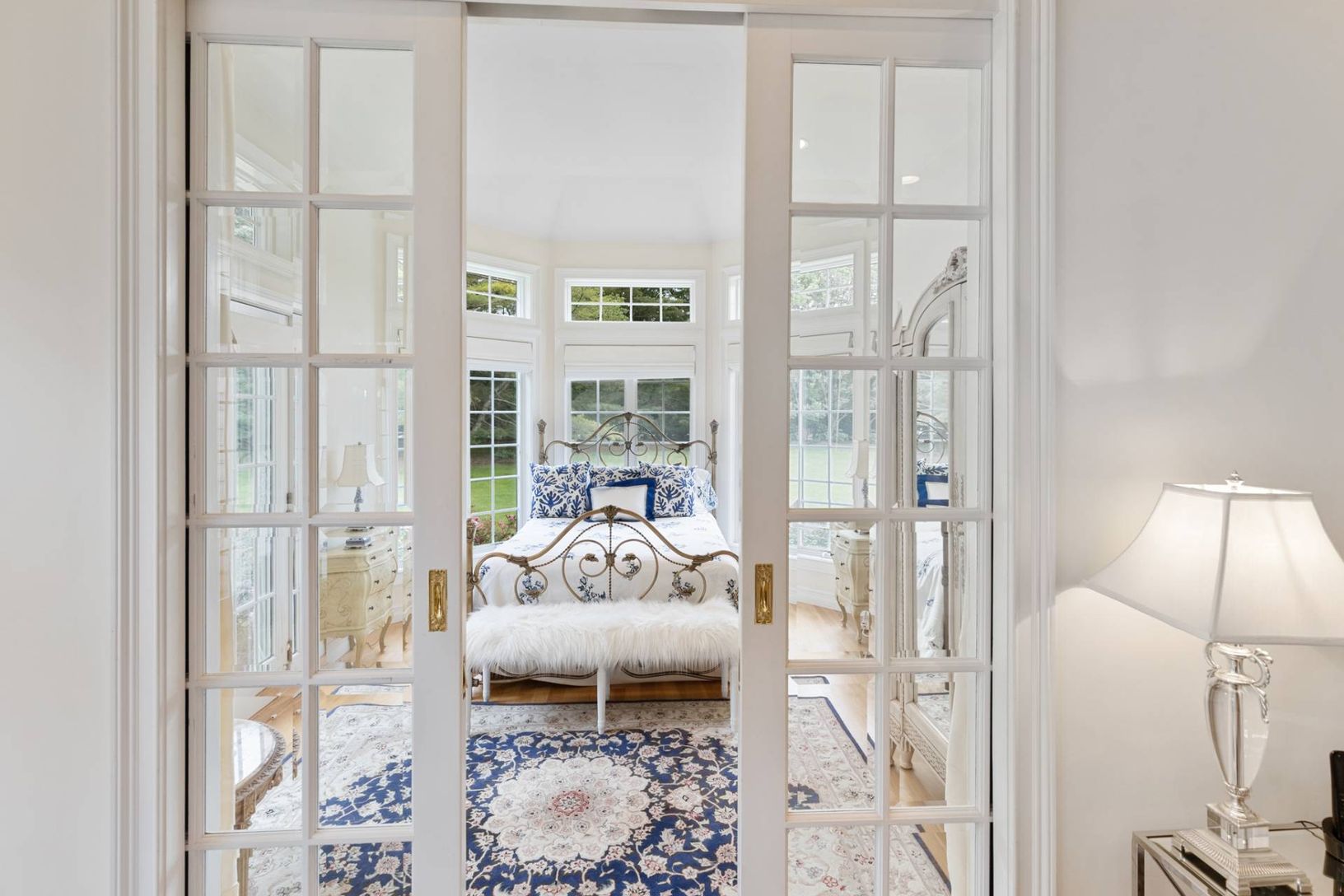 This six bedroom, four and one half bath gated estate in the heart of Water Mill, close to the village and ocean beaches, features spectacular views of an agricultural reserve and a working farm. With a Bose music system throughout the house, five flat screen TVs, radiant floor heating in the master bath and kitchen, a large kitchen with professional Viking appliances, a study, a double height living room, a formal dining room, an octagonal br