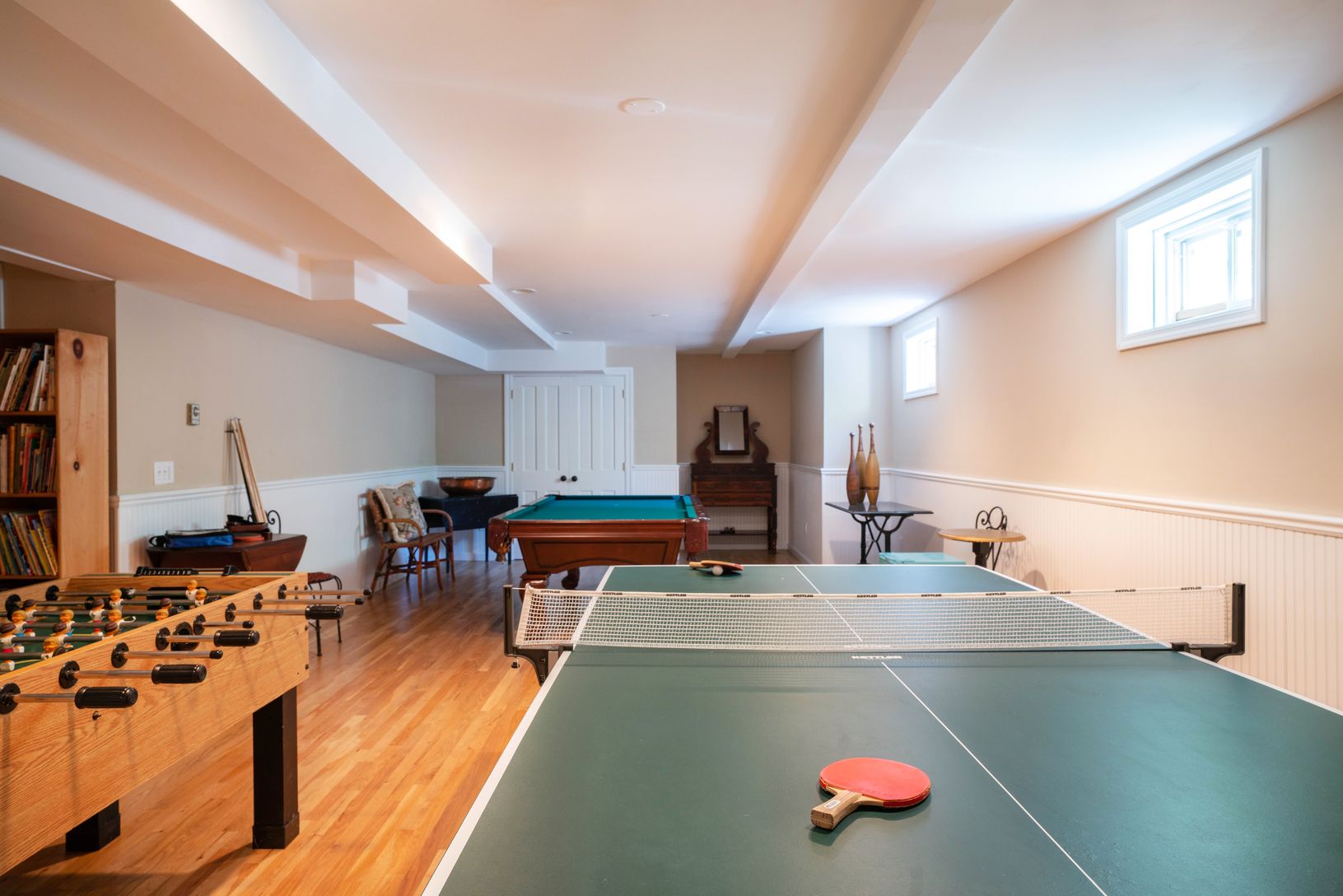 Immaculate six bedroom, six and one half bath home located close to the village of Southampton, ocean beaches and shops. Boasting 6000 square feet of living space, this home boasts plenty of room for the whole family! There are two master suites with king beds on both the ground and second floors. A finished basement offers a gym, foosball, ping-pong, pool table and recreation room. A heated pool and tennis