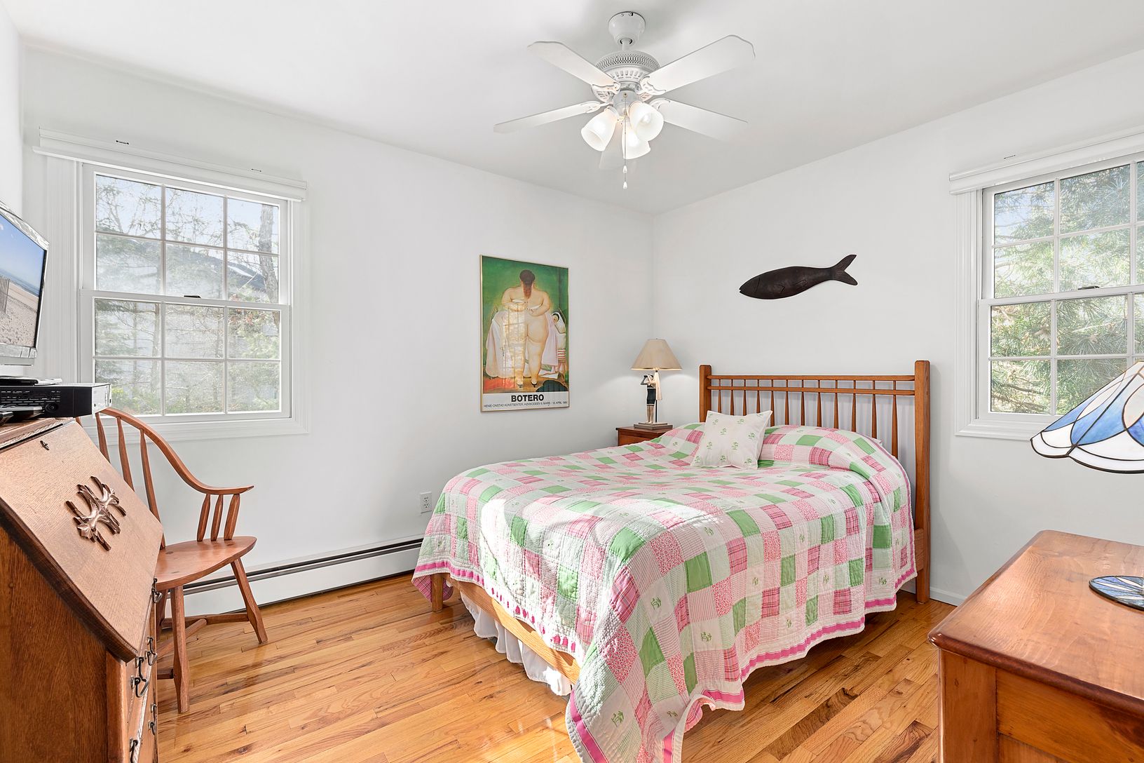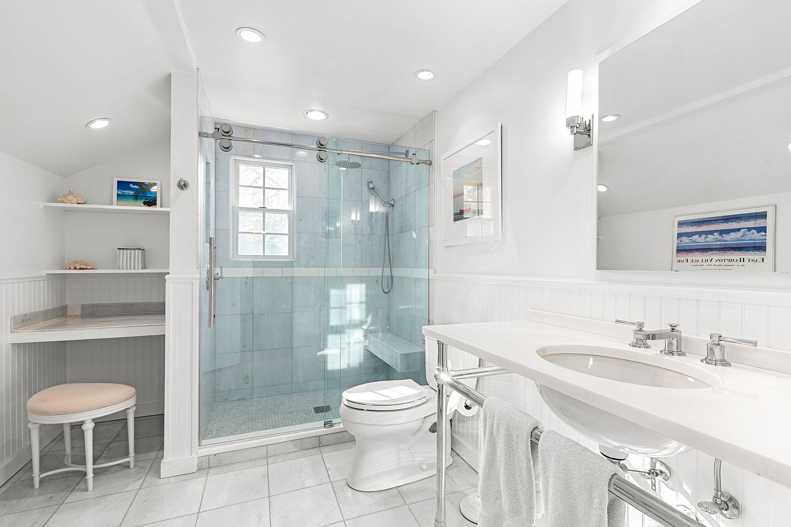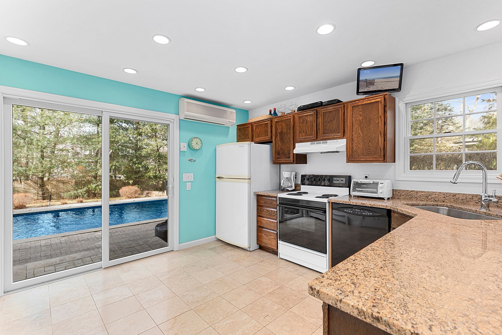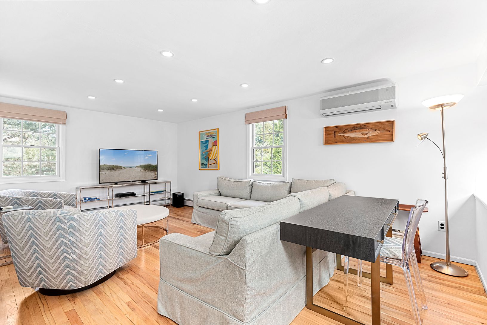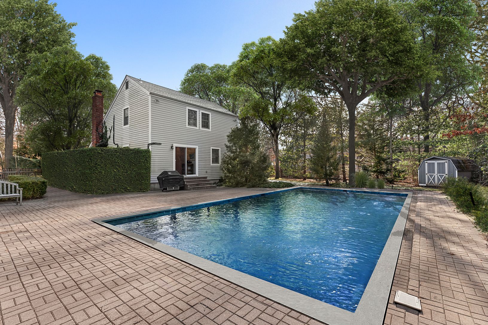 Bright, spotlessly clean with updated kitchen, 2 new marble baths. Upstairs primary bedroom plus 2 main floor bedrooms. Second level also has spacious lofted den perfect for at home offices, or family room. Finished basement. Lovely well landscaped yard and pool with a spacious brick patio.. Home sits privately off the street and around the bend from kayak/paddle board access onto Accabonac Harbor and Louse Point. A short hop to Maidstone Bay