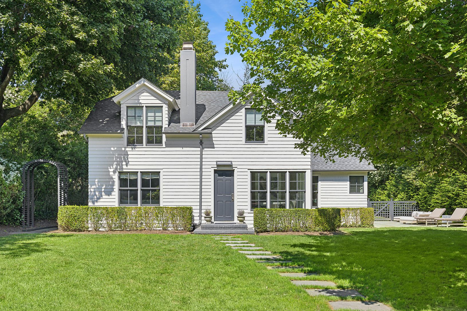 Discover elegance behind the gates of this fully renovated Southampton Village home. Seamlessly blending modern luxury with old-world charm, this two-bedroom, two-and-a-half-bath retreat features an open living-dining area with fireplace,a gourmet kitchen with Viking and Sub Zero appliances, and a cozy den with a fireplace. Set on a quiet, private flag lot, the stunning grounds designed by Edmund Hollander include specimen trees, custom stonew